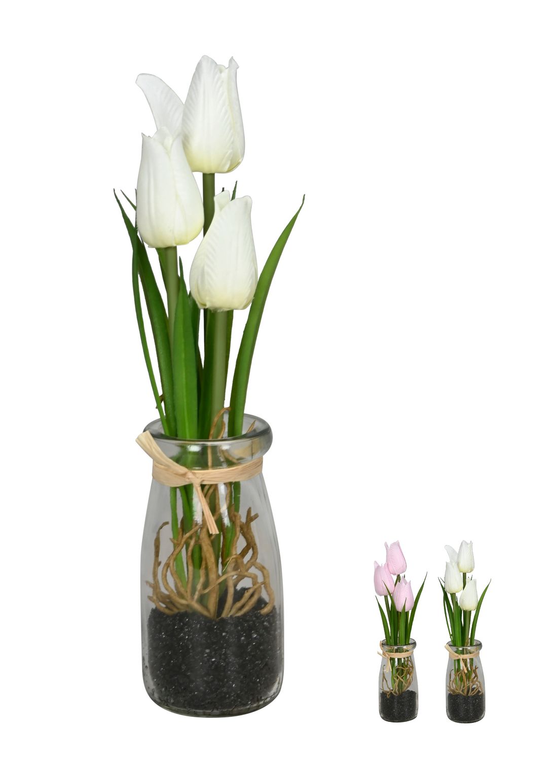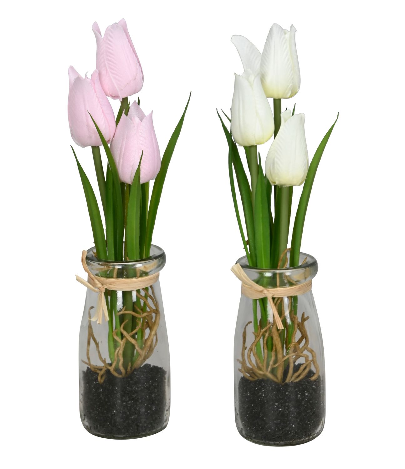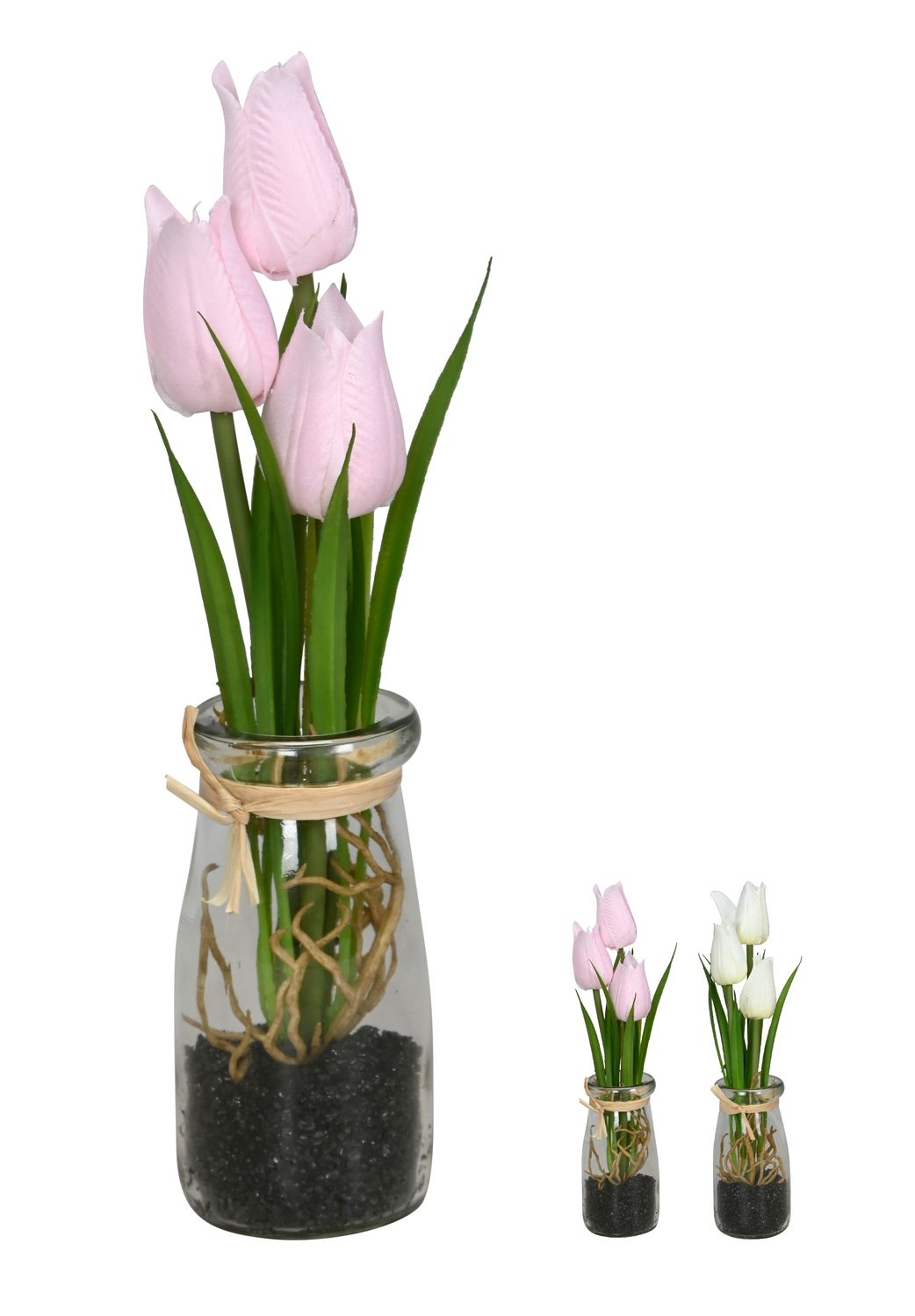 Deko Tulpen 3 Blüten in der Glasvase ca. 21 cm hoch künstliche Blume Kunstblume