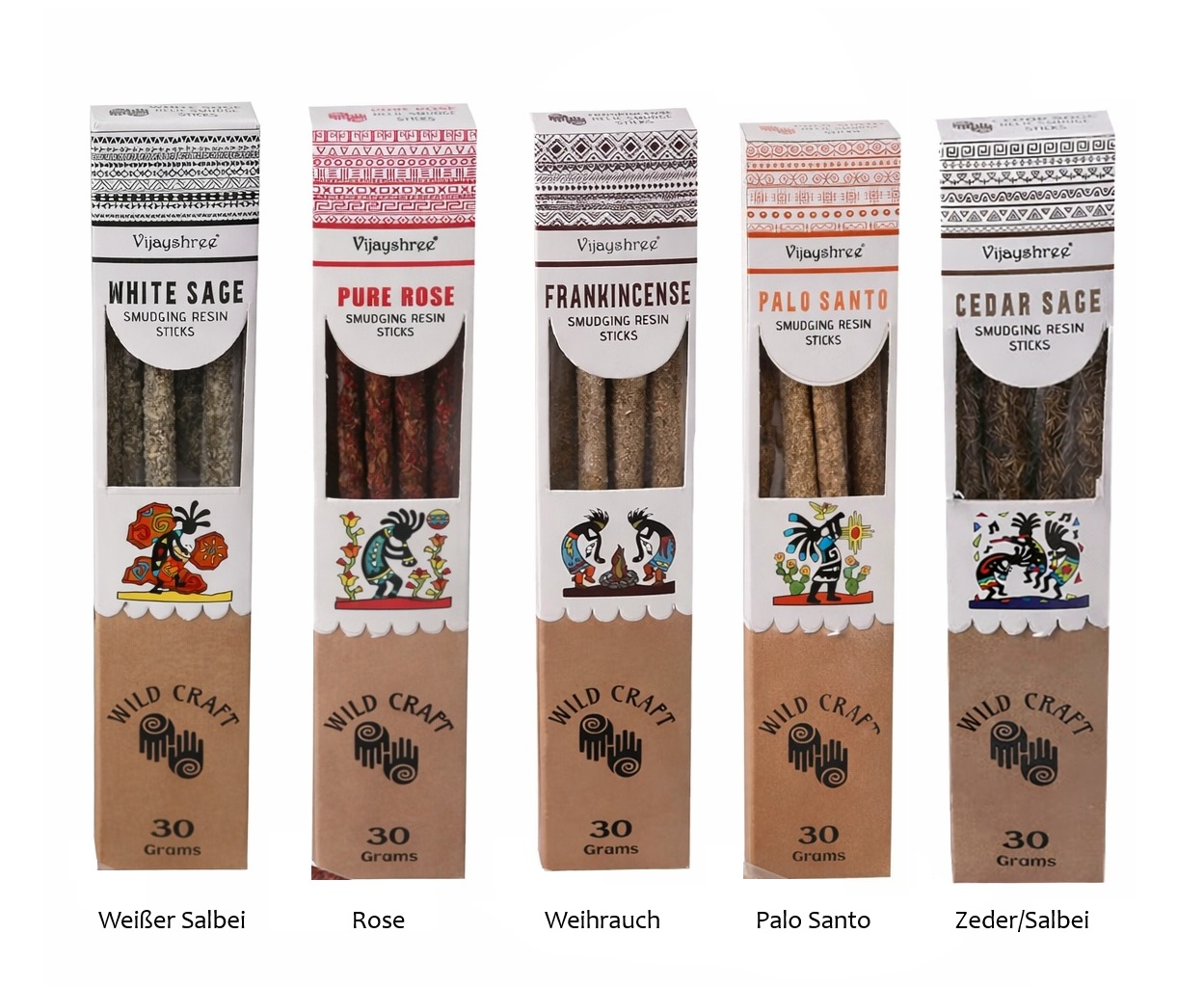 5 klassische Duftvarianten – Weißer Salbei, Rosenharz, Weihrauch, Palo Santo und Zedernsalbei fĂŒr vielseitige Anwendungen