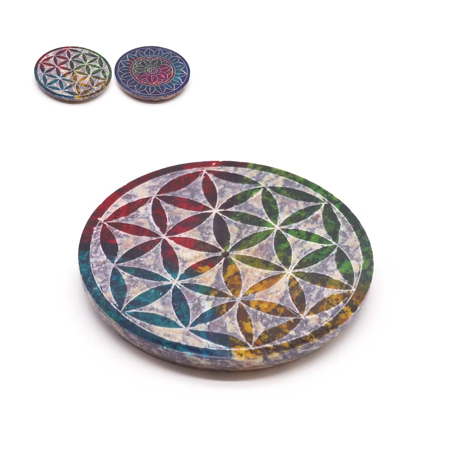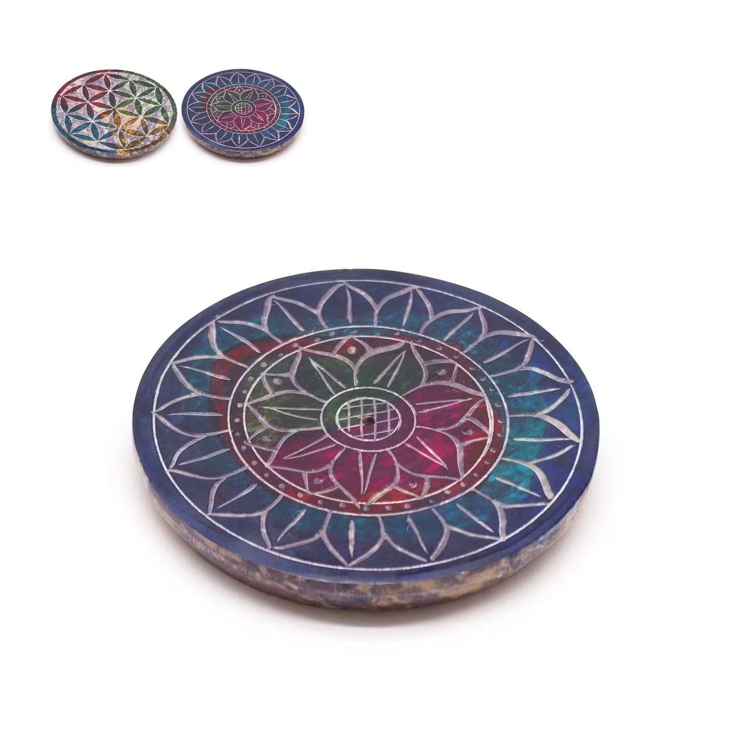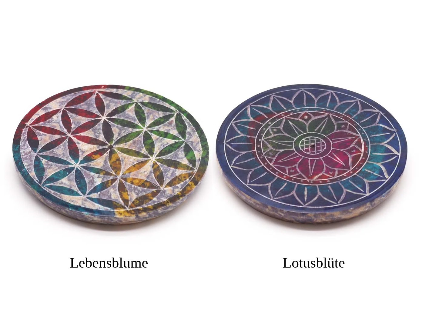RĂ€ucherstĂ€bchenhalter aus Speckstein – 8 cm mit Lotus & Blume des Lebens