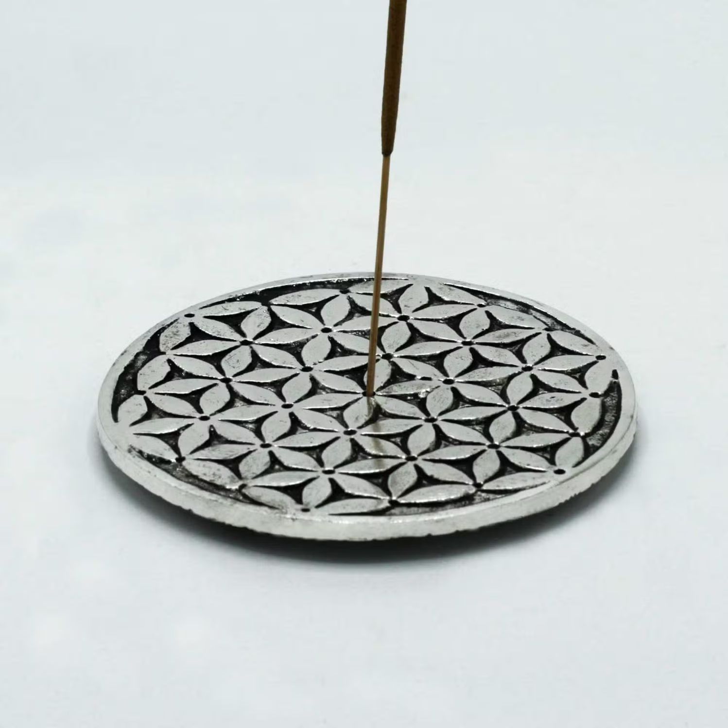 RĂ€ucherstĂ€bchenhalter aus poliertem Aluminium – Lebensbaum & Blume des Lebens