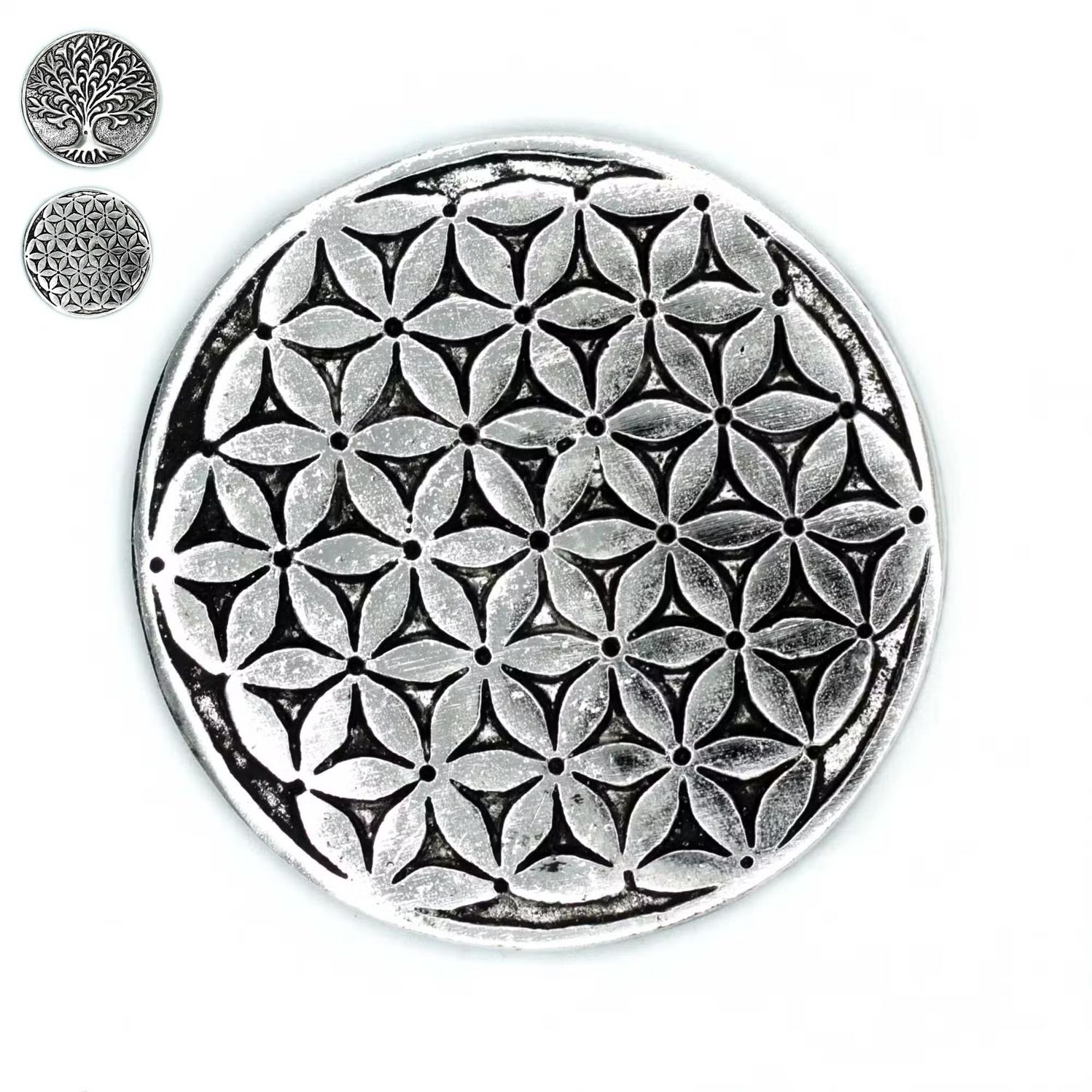RĂ€ucherstĂ€bchenhalter – Spirituelle Halter Lebensbaum & Blume des Lebens – Polierter Aluminium‑Incense Holder fĂŒr RĂ€ucherstĂ€bchen & Kegel