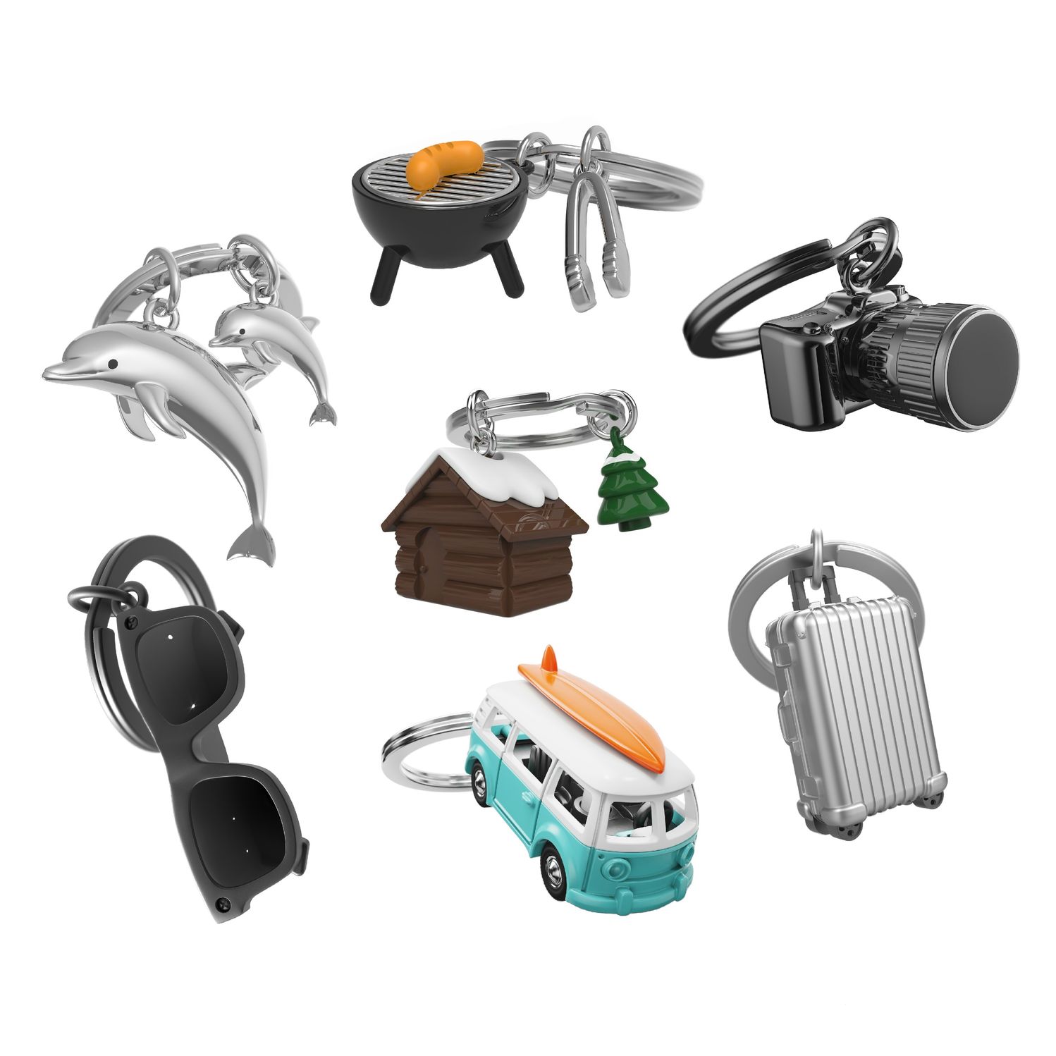 Fein gearbeitete SchlĂŒsselanhĂ€nger mit Urlaubs-Motiven â ideal fĂŒr alle Reisefans und Freizeitfans