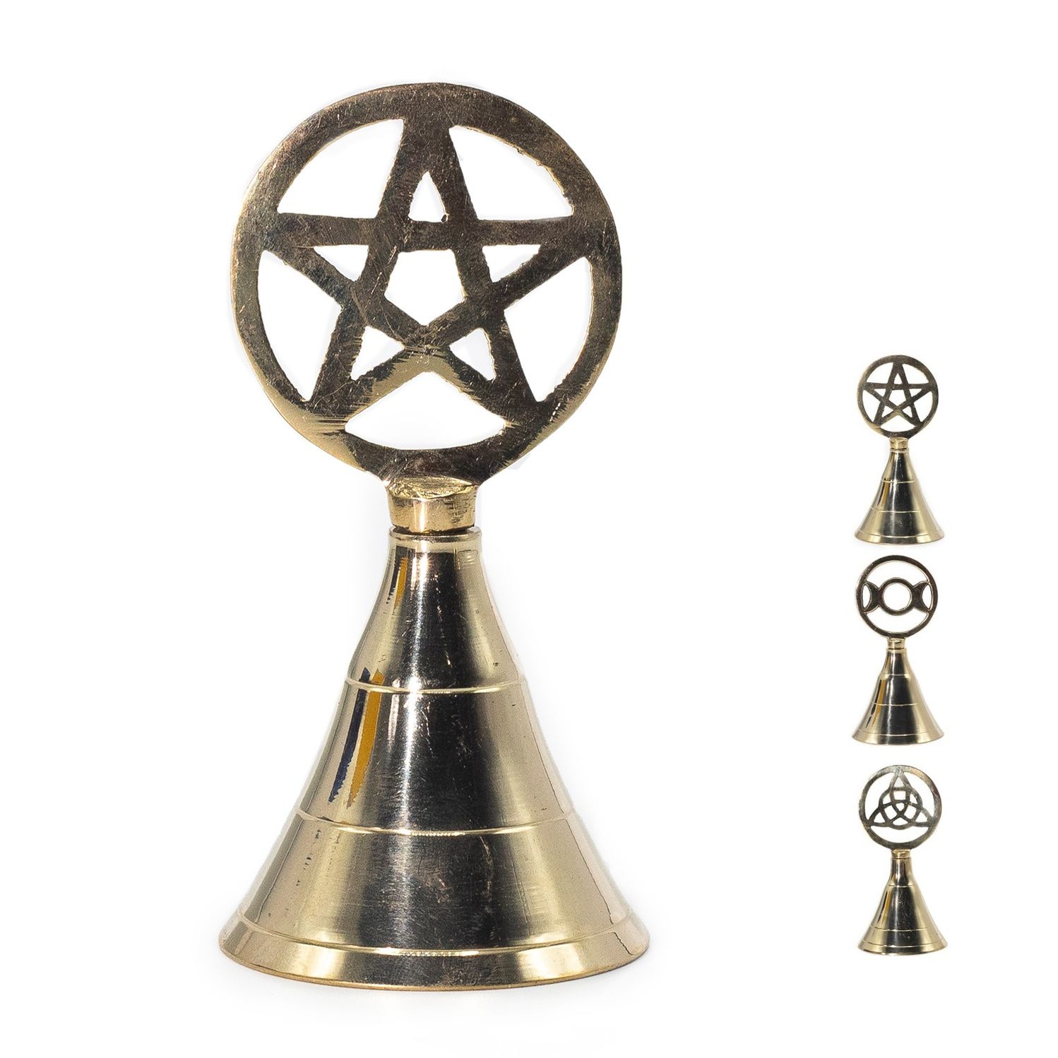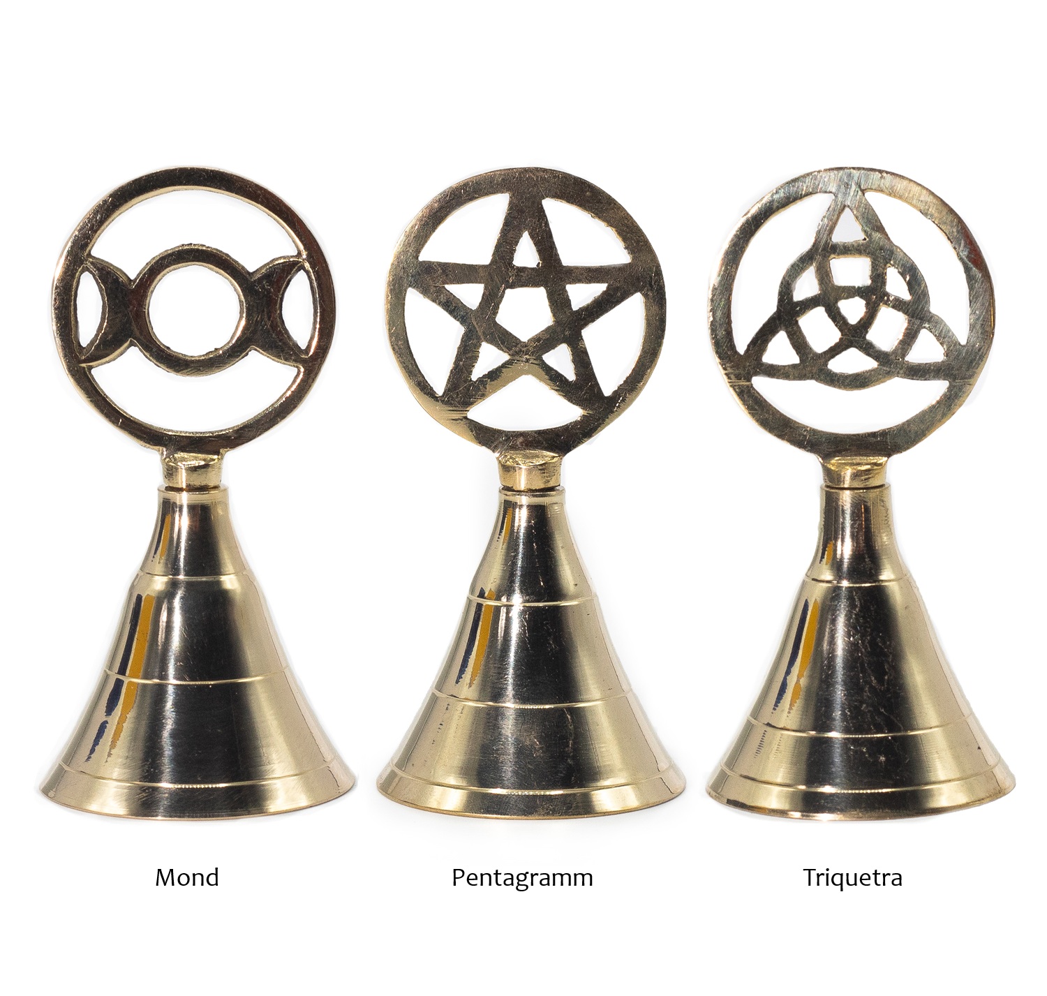 Altarglocke mit Symbolgriff – Pentagramm, Drei Monde oder Triquetra – Ritualglocke zur energetischen Reinigung & Meditation