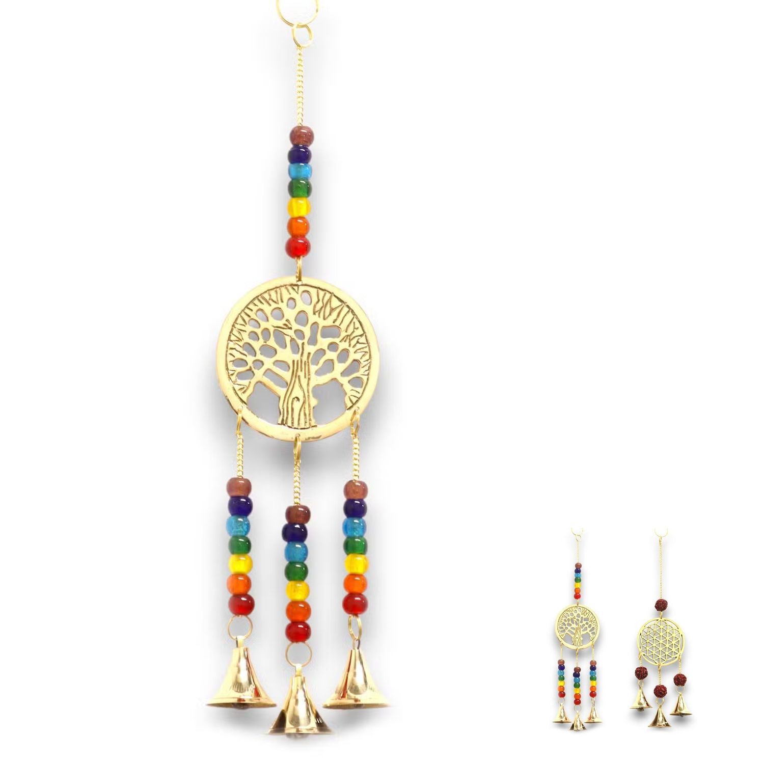 Indisches Windspiel Blume des Lebens oder Lebensbaum – Messing Glockenspiel fĂŒr Balkon & Garten Deko