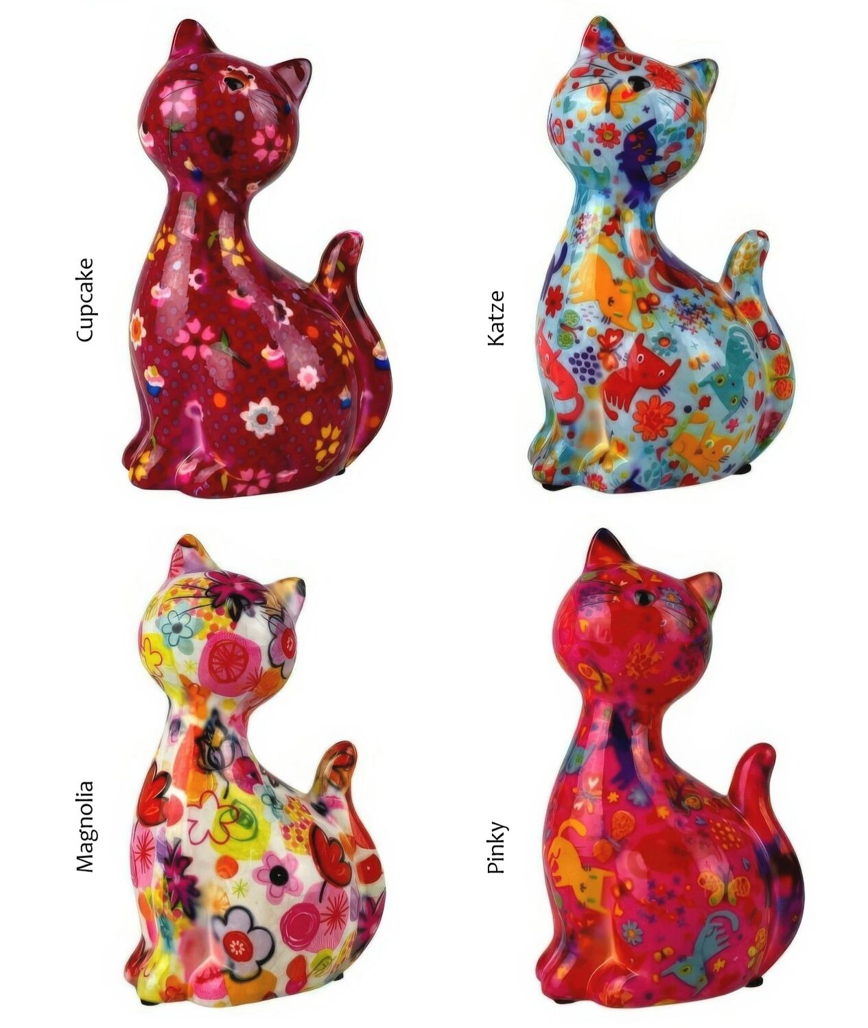 Diese liebevoll gestalteten Spardosen sind aus hochwertiger Keramik gefertigt, mit Papier belegt und anschlieĂend gebrannt. Teilweise sind die Figuren handbemalt. Durch die verwendete Technik gleicht kein Tier dem Anderen, jedes hat seinen eigenen Charakter. Der Einwurfschlitz befindet sich auf der RĂŒckseite.