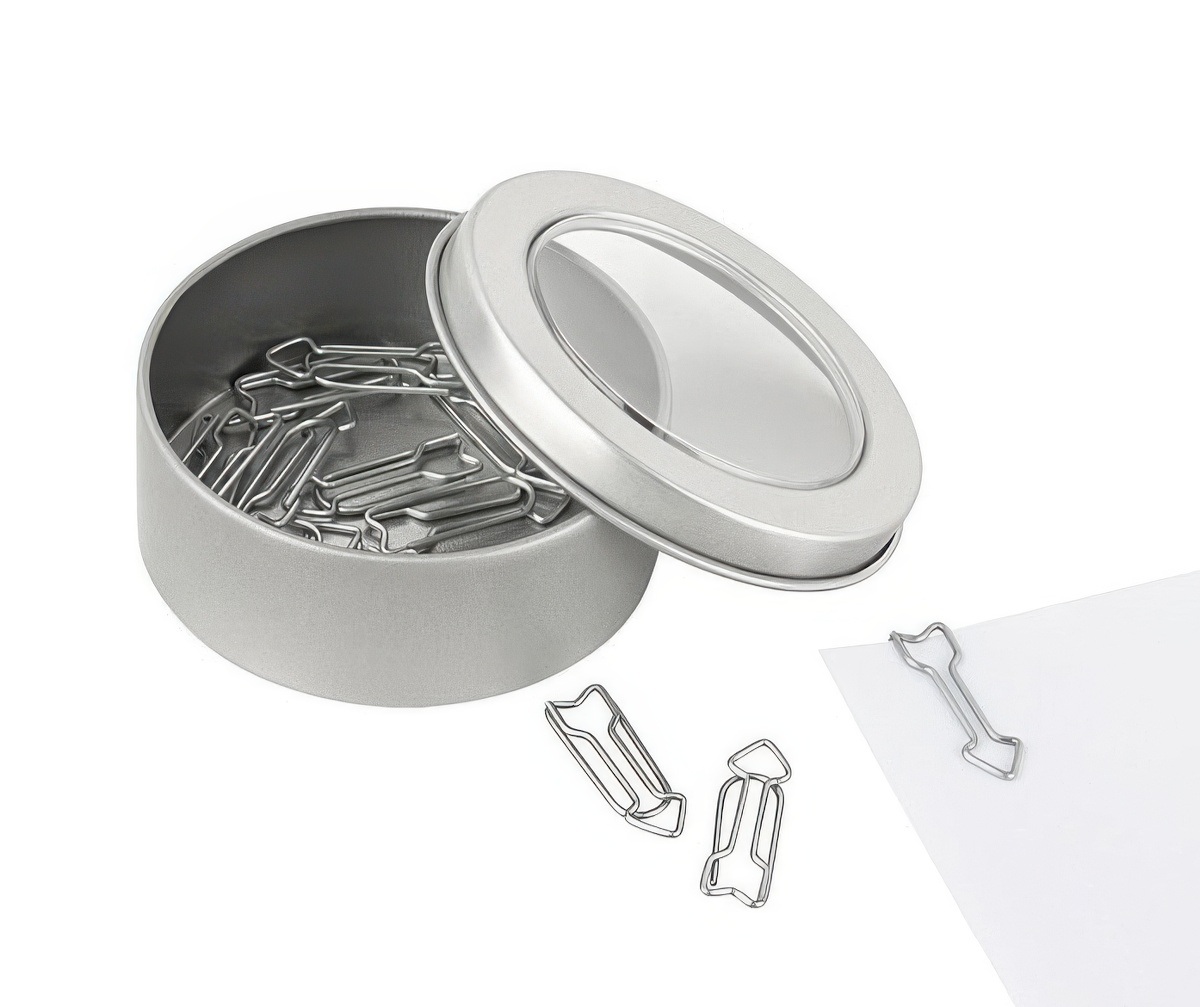 Inhalt: 1 Stück Metalldose mit 15 Stück Büroklammern