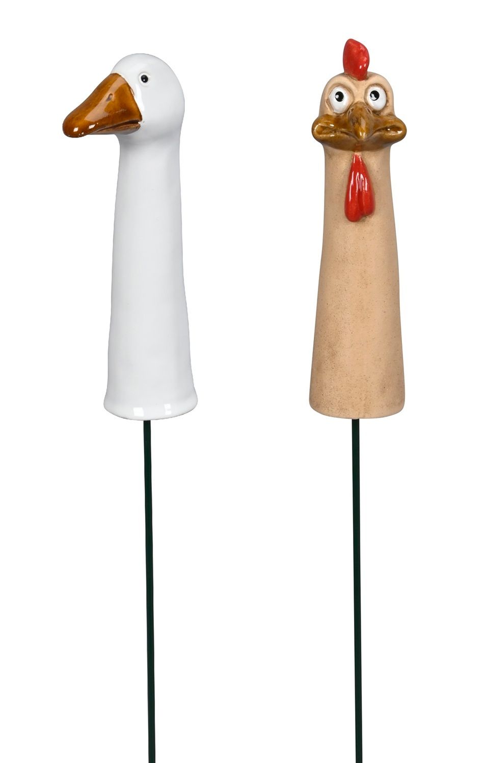 Gartenstecker Gänsekopf oder Hühnerkopf am Stab Steinzeug Höhe ca. 18 cm + Stab Gartenfigur Gans oder Huhn