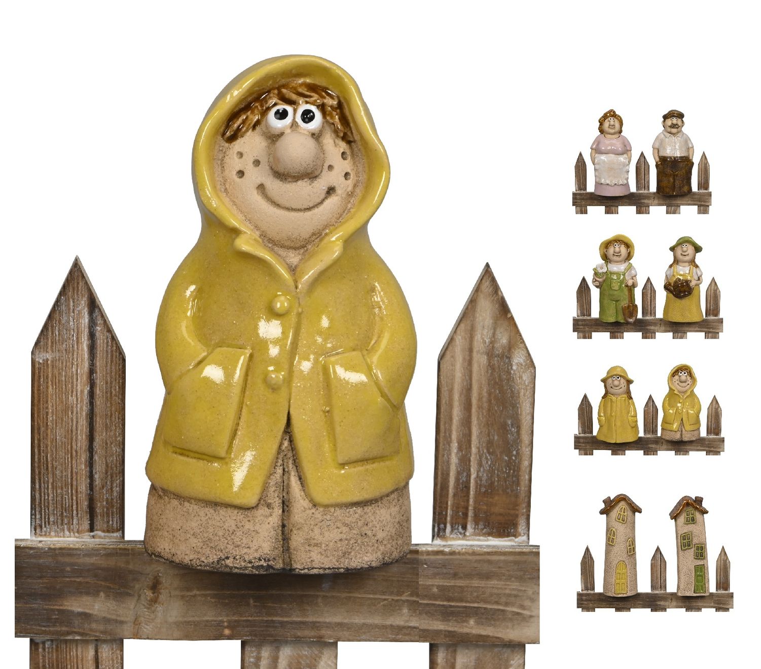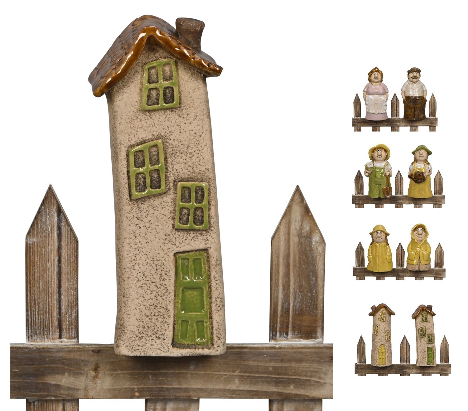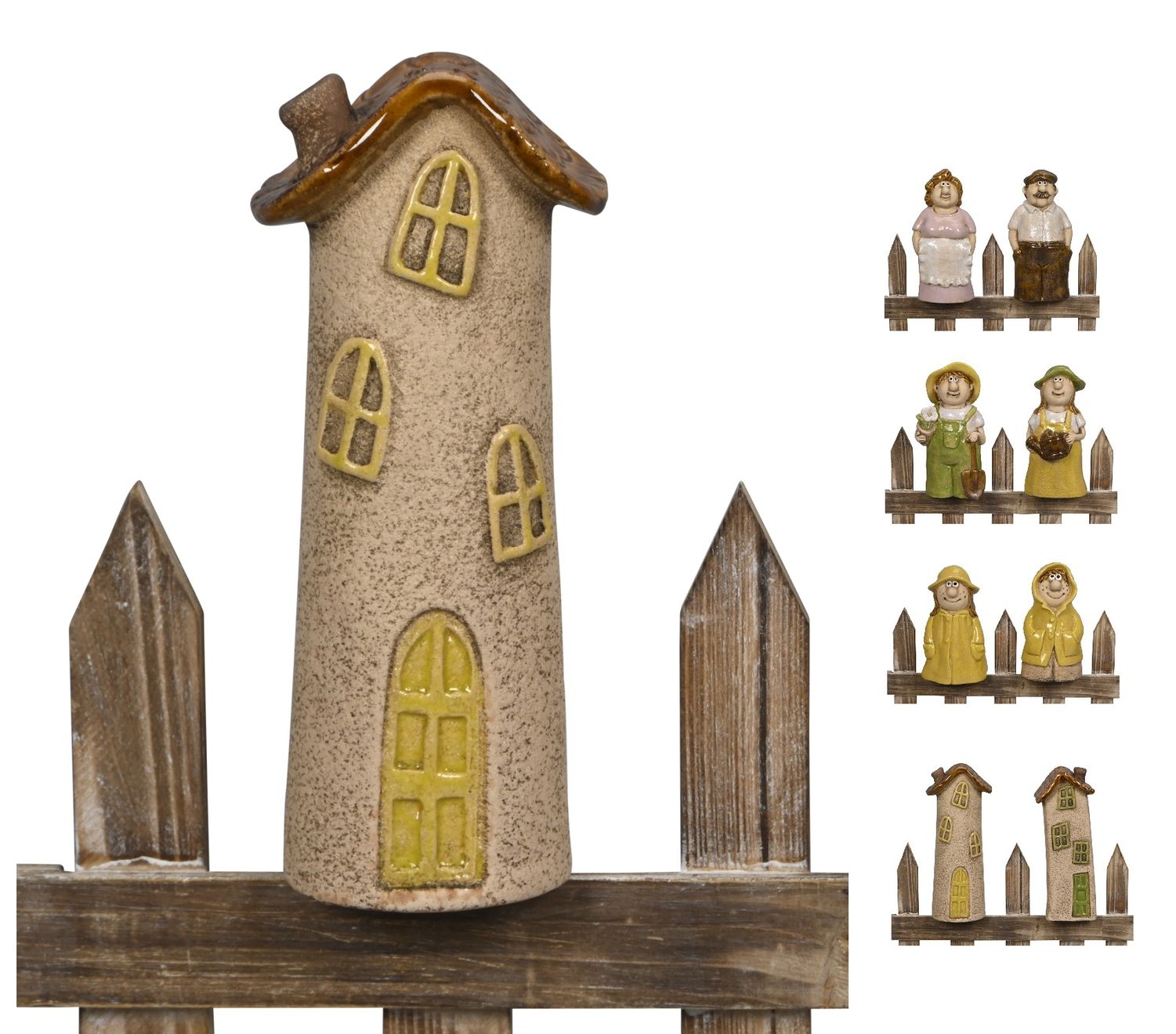 Zaunfigur Neue Familie und Turmhaus Küstenleben Zaunhocker Steingut Höhe ca. 15-18 cm