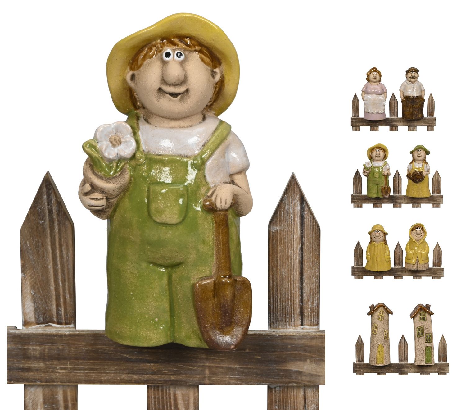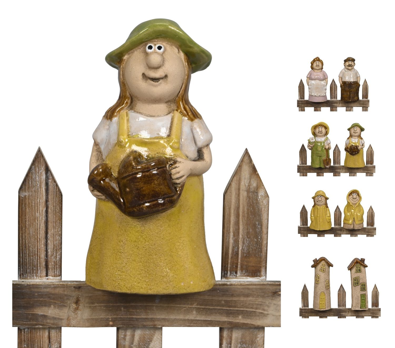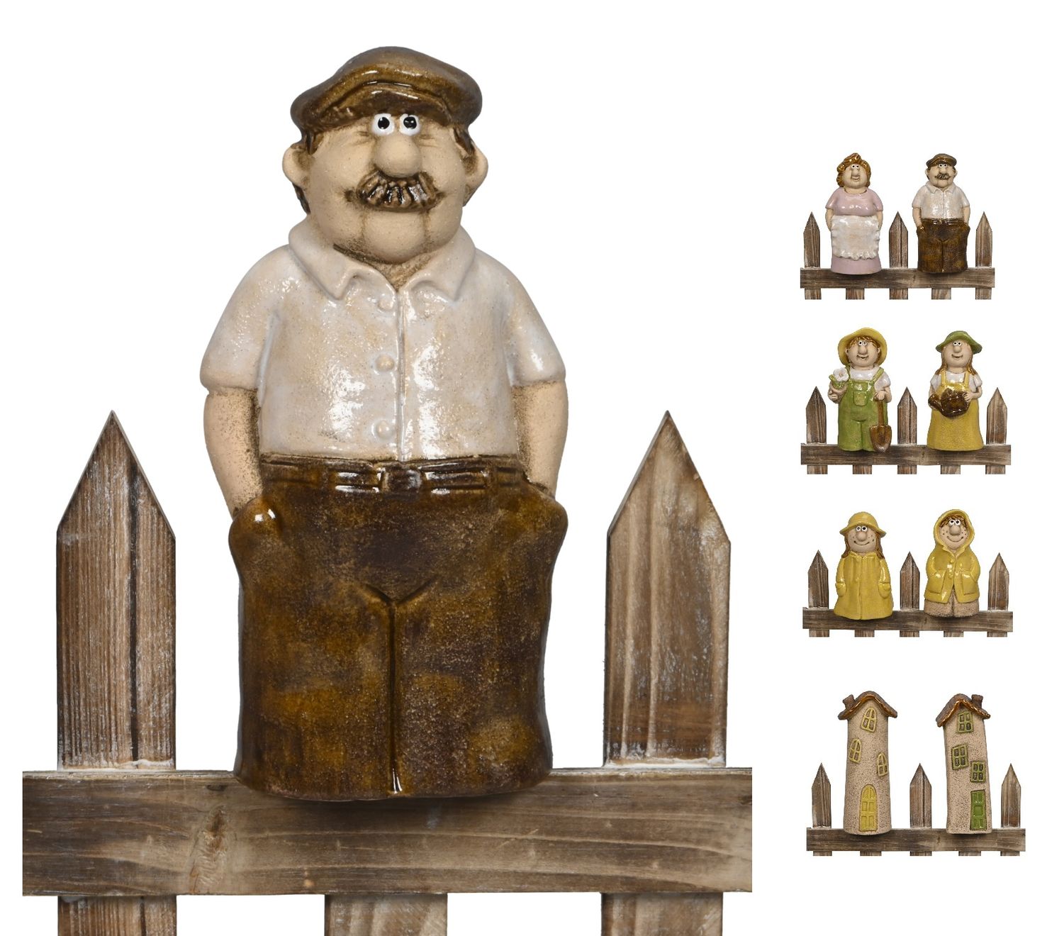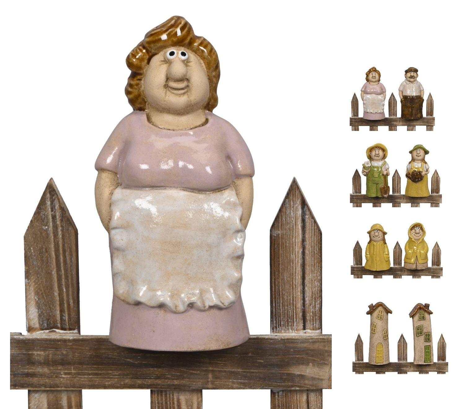 Zaunfigur Neue Familie und Turmhaus Küstenleben Zaunhocker Steingut Höhe ca. 15-18 cm
