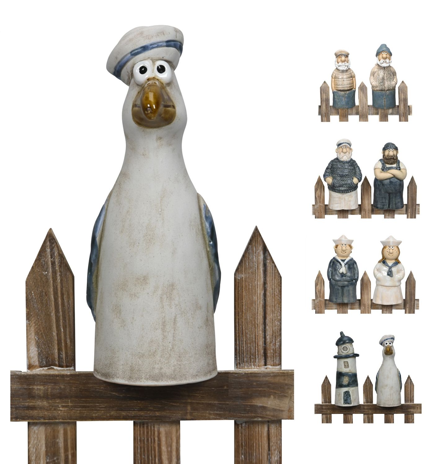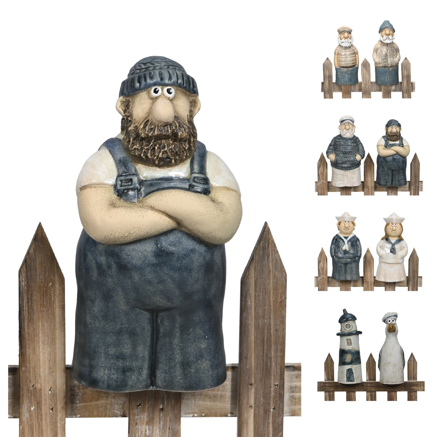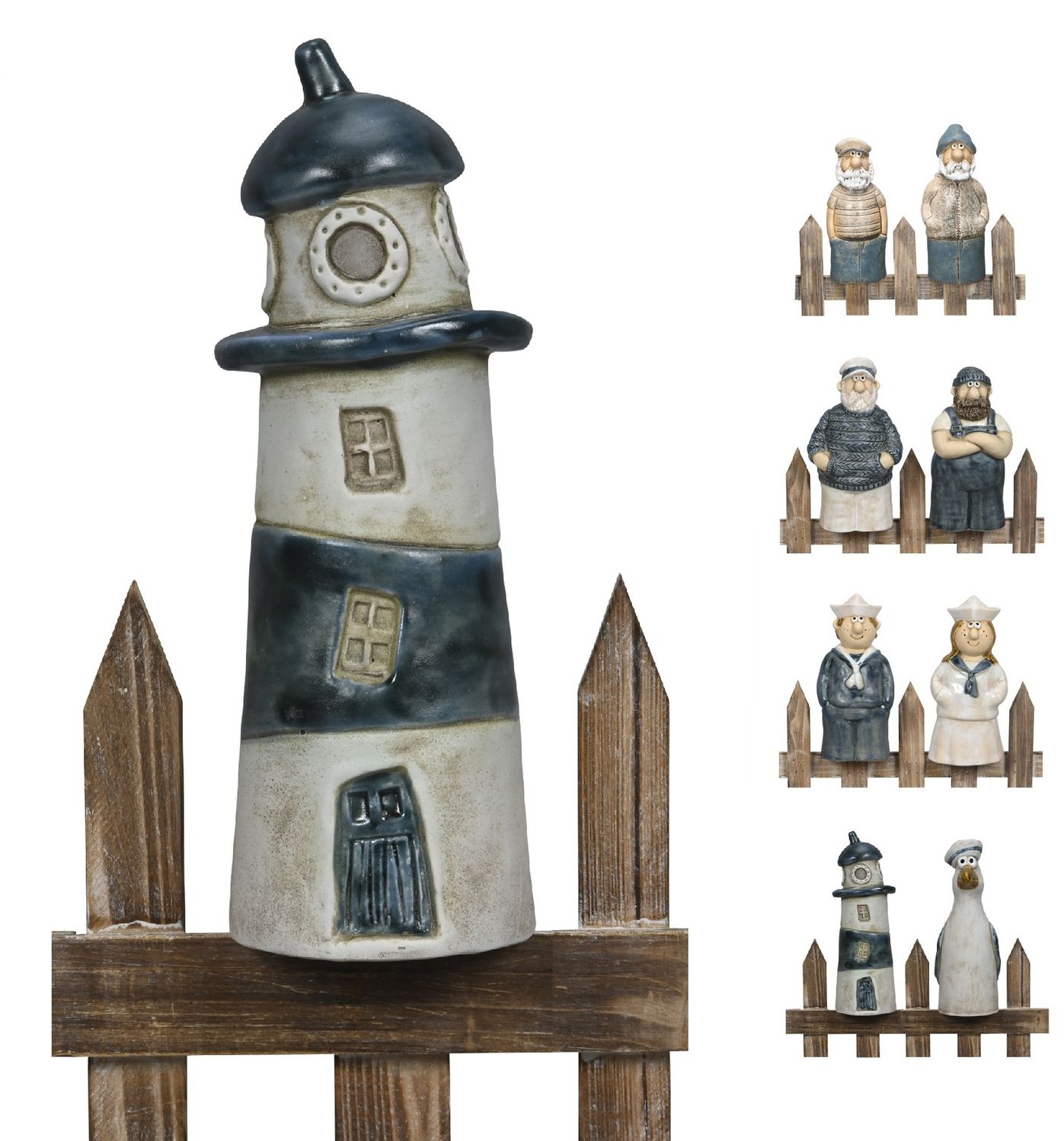 Zaunfigur Seemann Küstenmann Küstenfrau Leuchtturm Möwe Zaunhocker Steingut Höhe ca. 19-22 cm