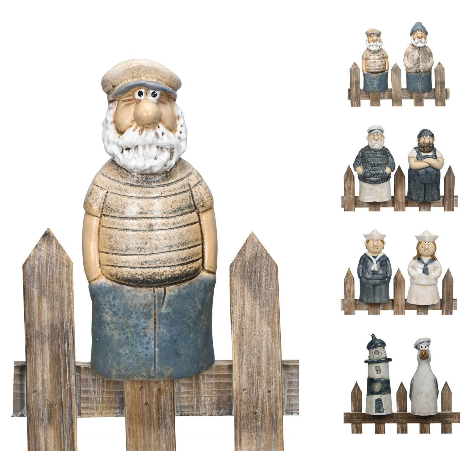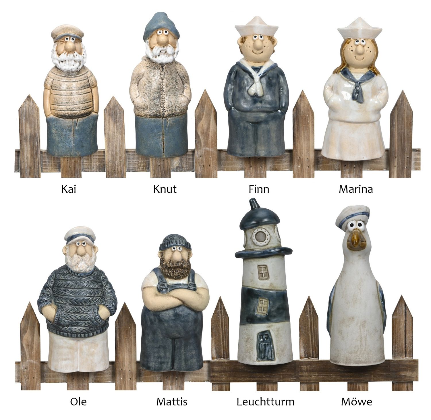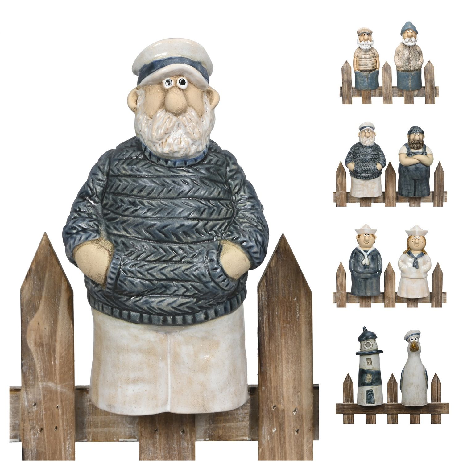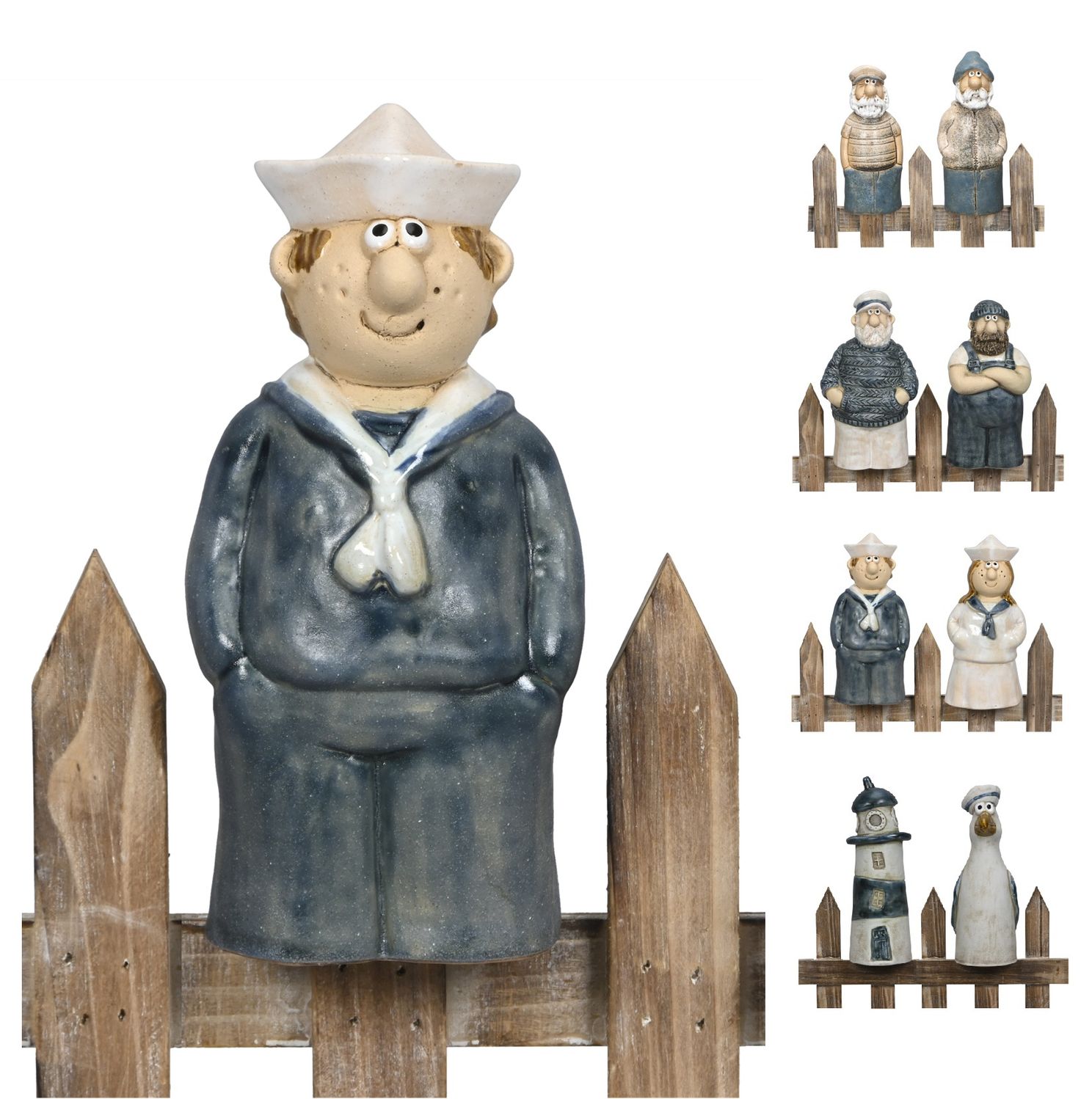 Zaunfigur Seemann Küstenmann Küstenfrau Leuchtturm Möwe Zaunhocker Steingut Höhe ca. 19-22 cm