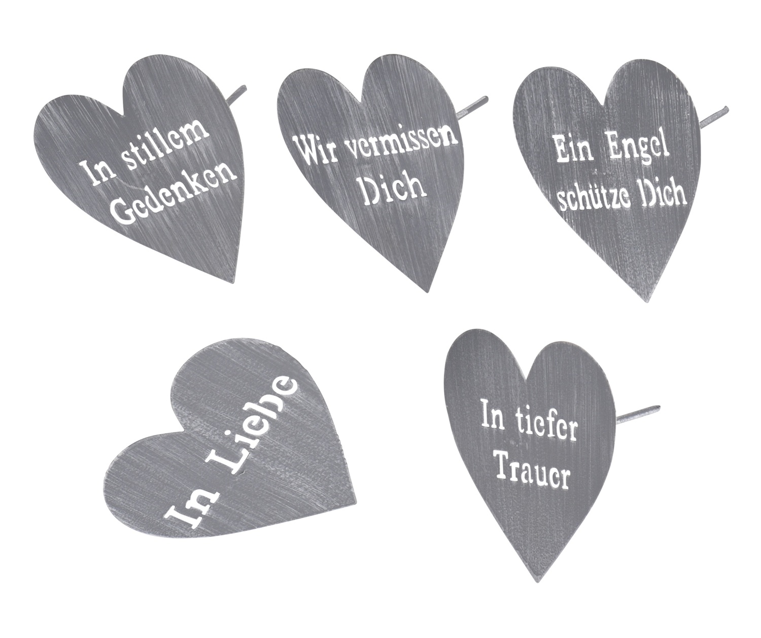 Grabschmuck Herz mit verschiedenen Trauer-Aufschrift zum Stecken ca. 7 x 7 x H 5cm