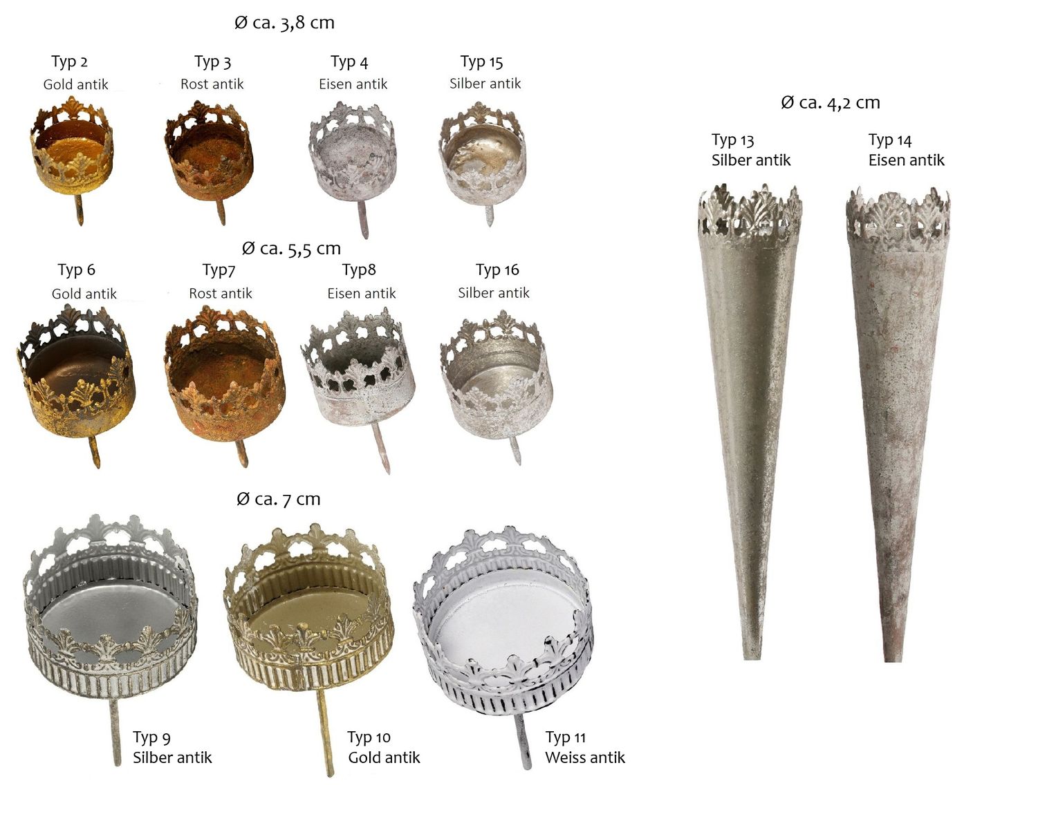 Kerzenhalter und Teelichthalter Antik fĂŒr Gestecke und KrĂ€nze Auswahl