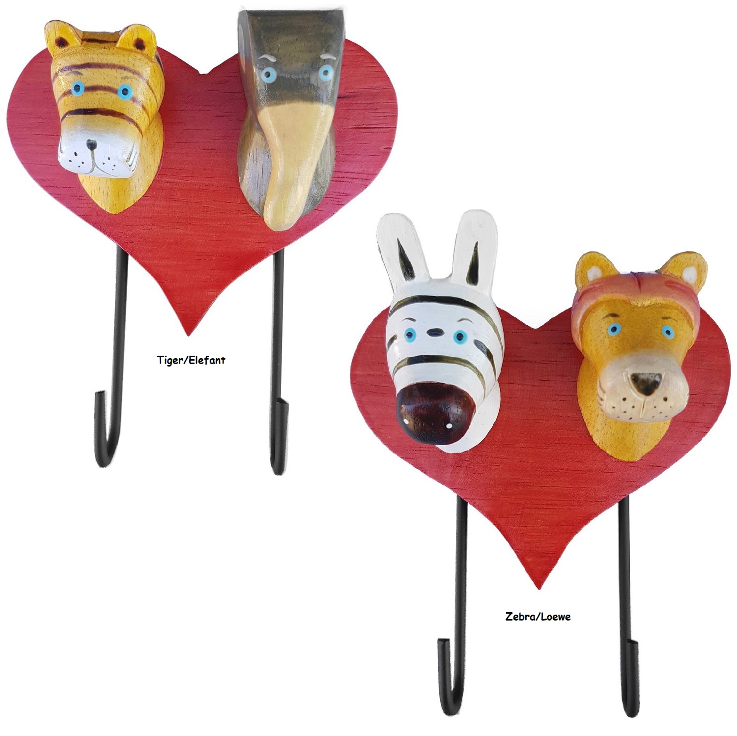 AKTION Kleiderhaken, Schlüsselhaken mit Tierpaar auf Herz mit 2 Haken aus Holz