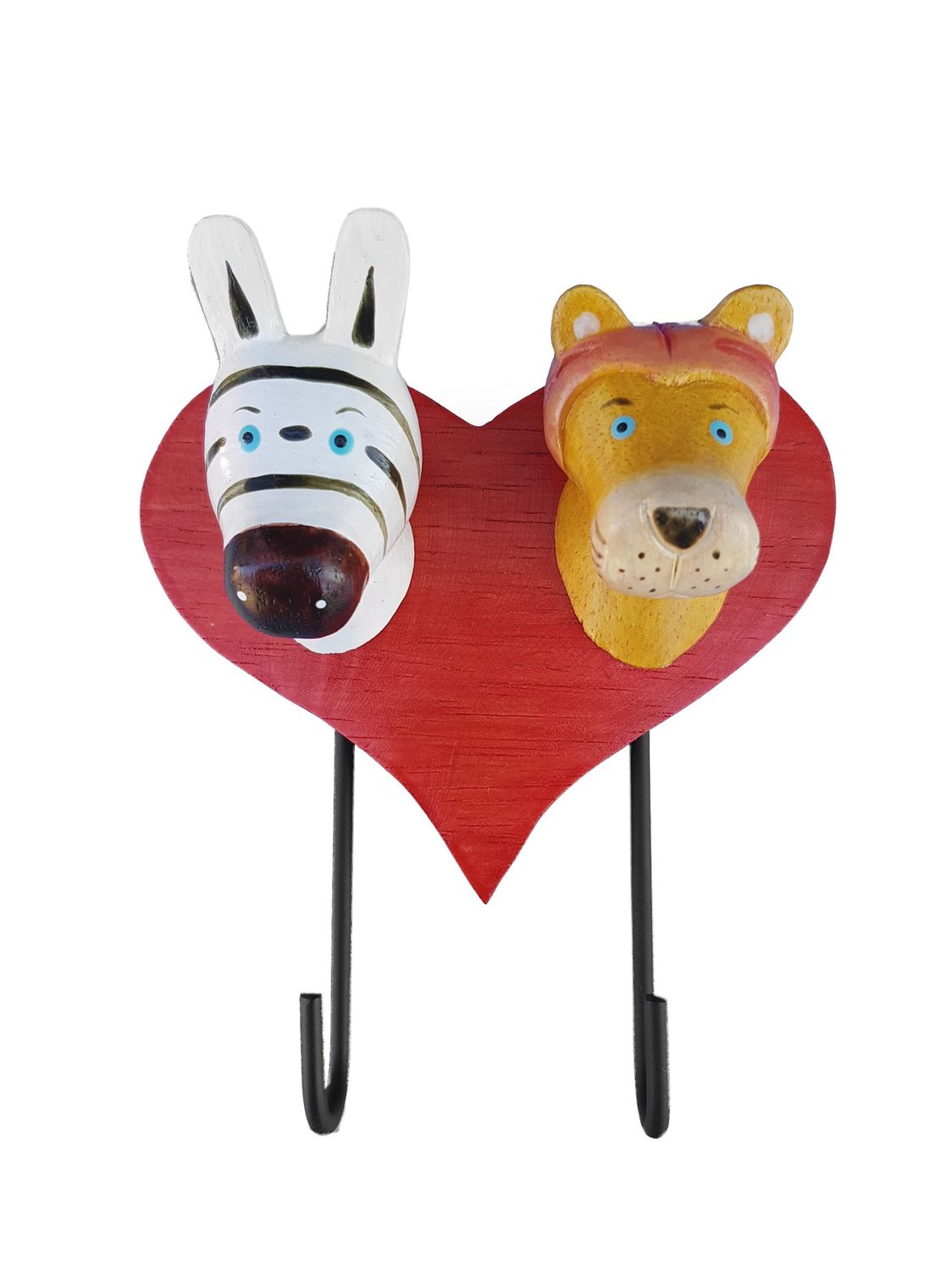Kleiderhaken, Schlüsselhaken mit Tierpaar auf Herz aus Holz