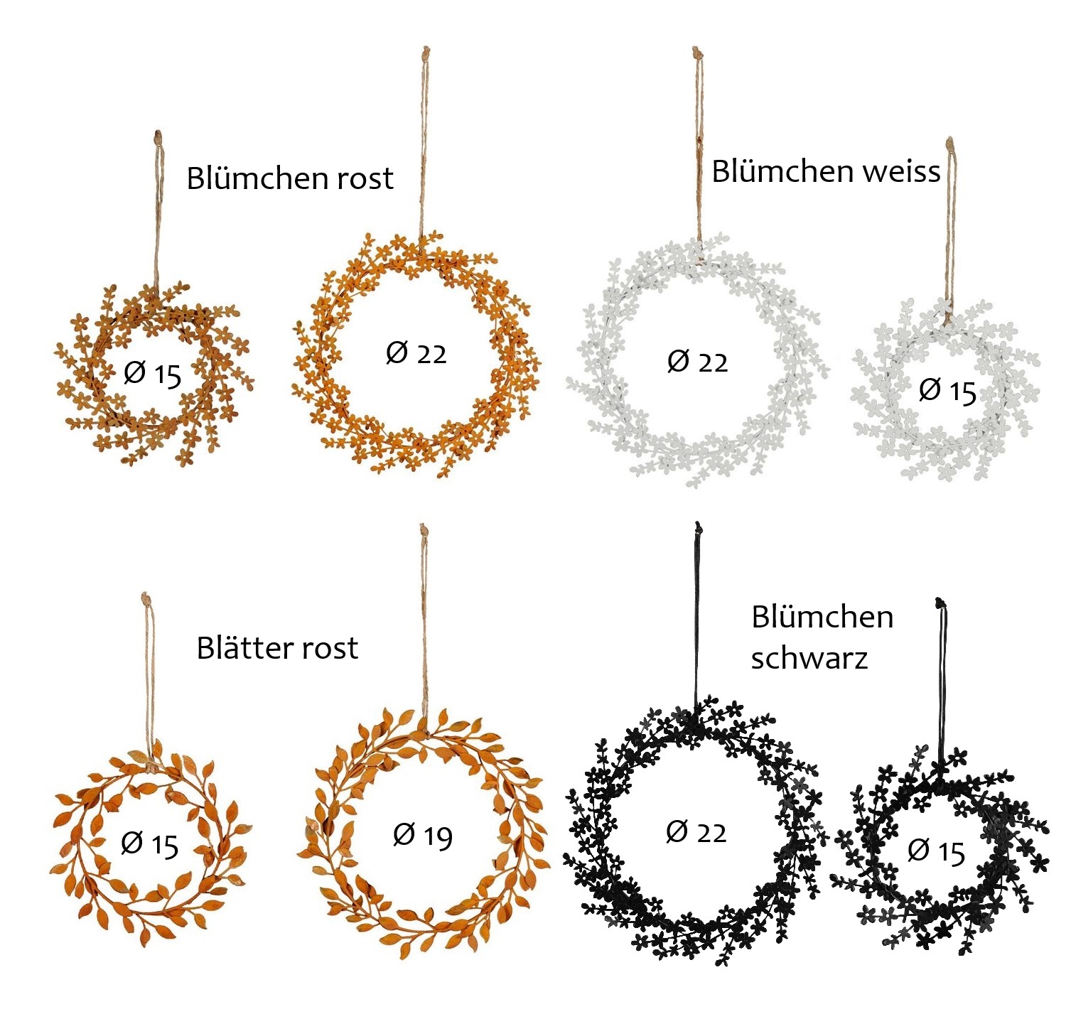 Dekokranz Metall mit stilisierten BlĂŒten z. HĂ€ngen TĂŒrkranz Durchm ca.10-20cm