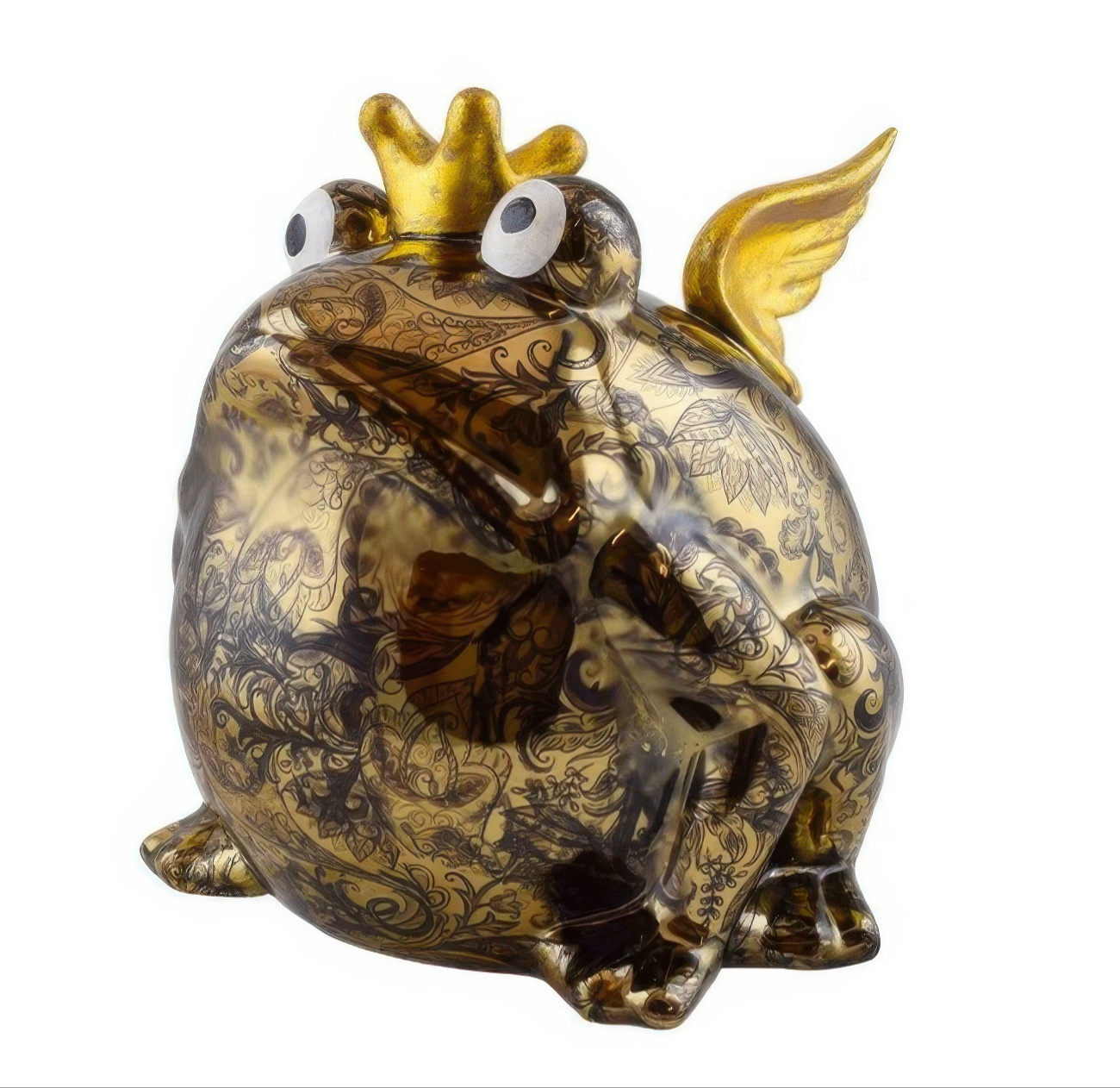 Spardose Frosch Freddy mit FlĂŒgeln braun & gold Keramik Pomme Pidou GröĂe M ca. 15 x 16,5 x H 16,5 cm