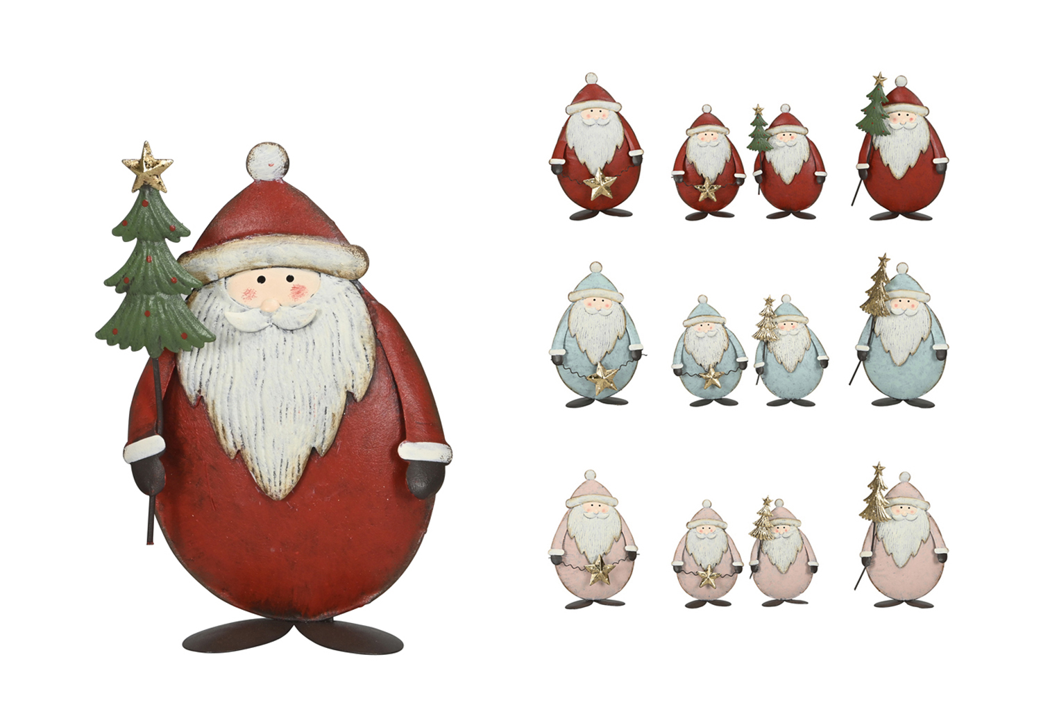 Weihnachtsmann Metallfigur mit Baum oder Stern in in schönen Farben und 2 GrĂ¶ĂŸen
