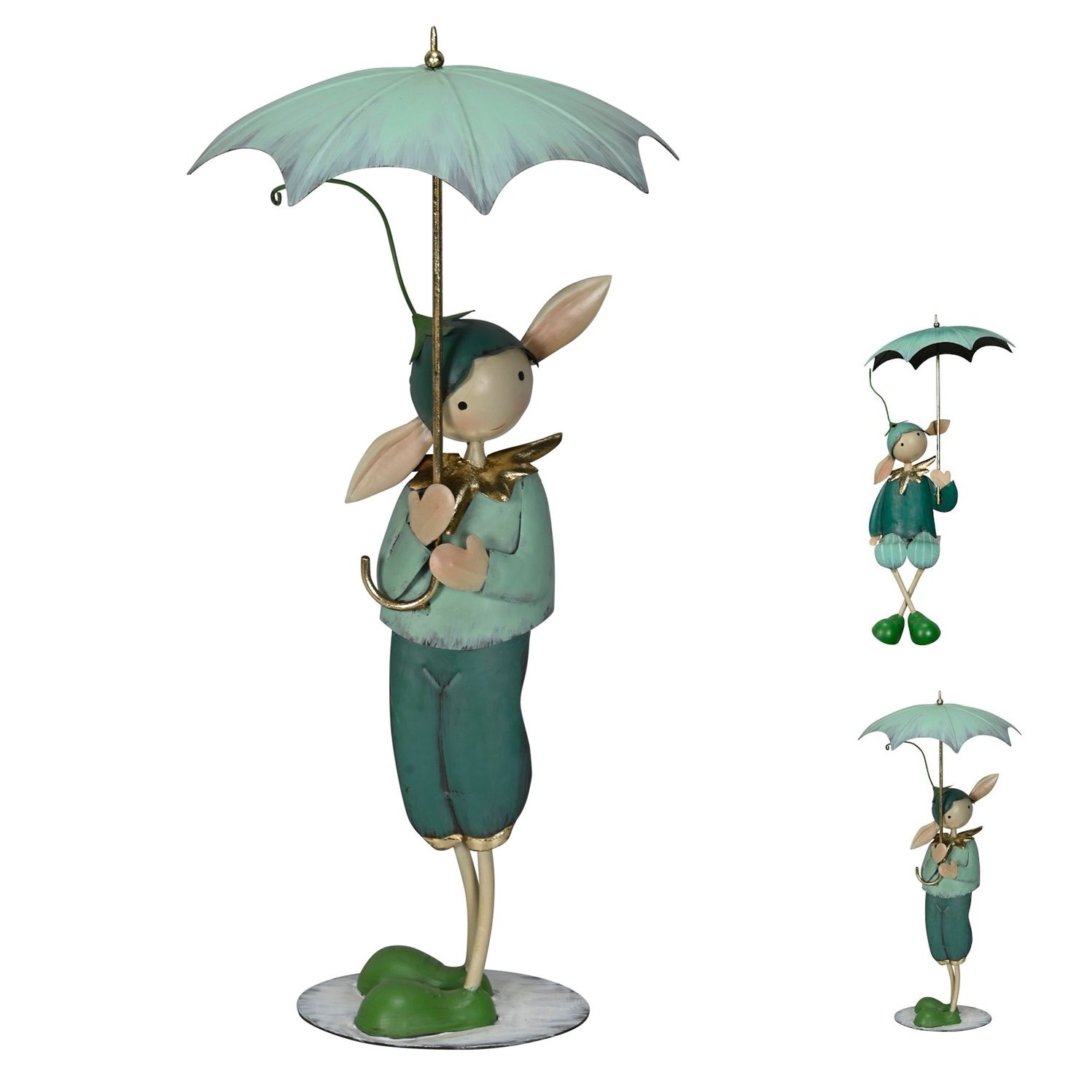 Großer Dekorativer Gartenelf mit Schirm Adrian aus Metall Höhe ca. 50 cm