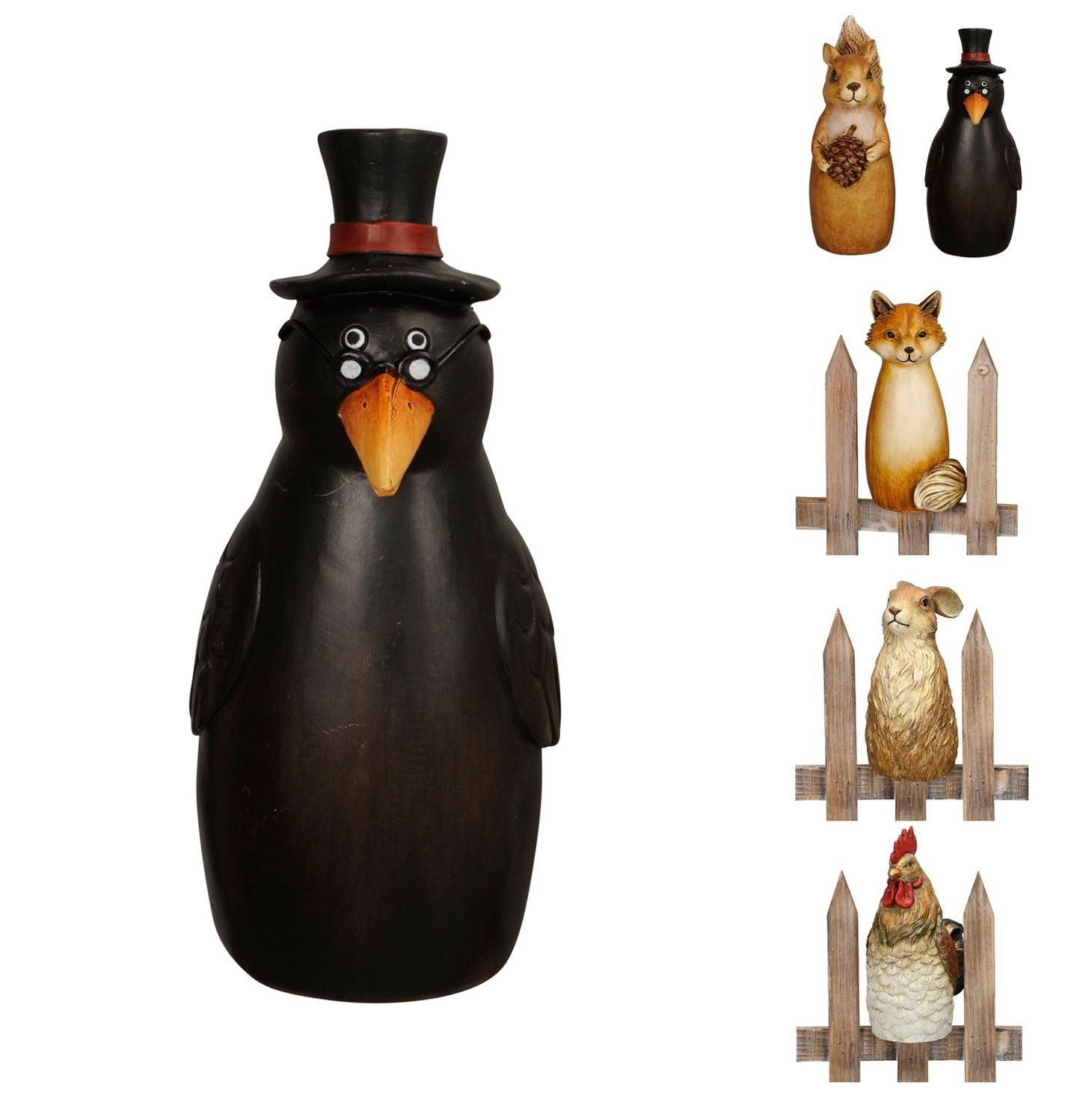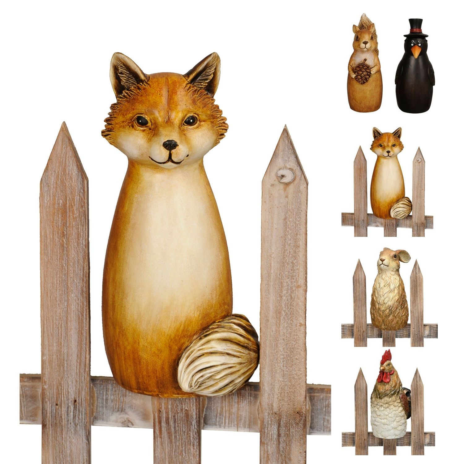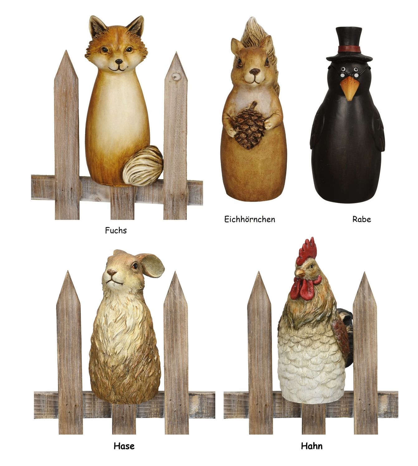 Zaunhocker Rabe Eichhörnchen Fuchs Zaunfigur H: 20 cm Polyresin