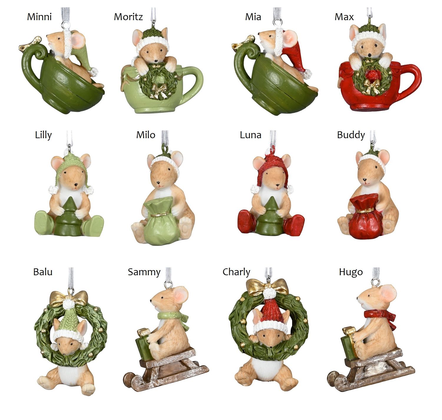 Schöner Weihnachtsschmuck MĂ€usefamilie zum HĂ€ngen in verschiedenen AusfĂŒhrungen