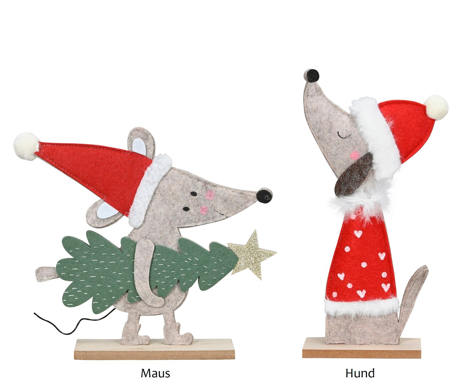 Weihnachtshund oder Weihnachtsmaus mit Tannenbaum Höhe 29cm oder 22cm