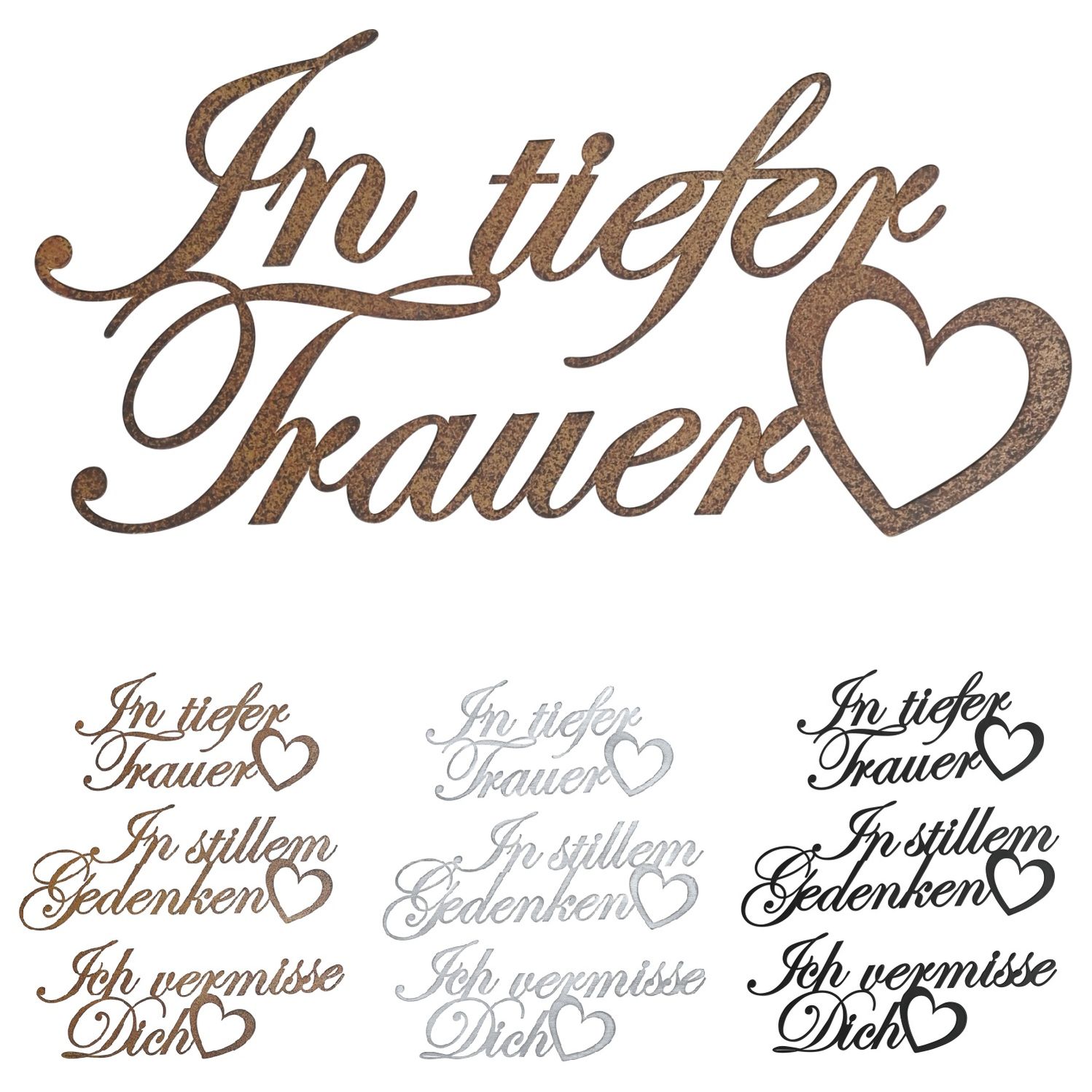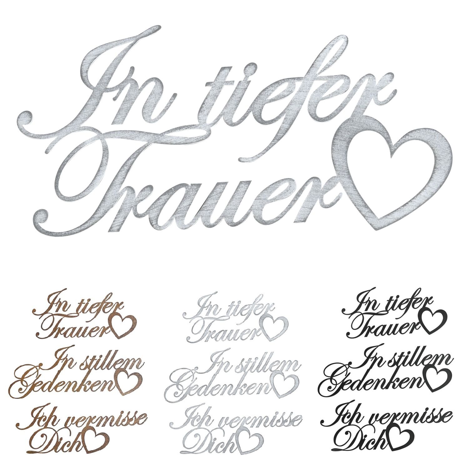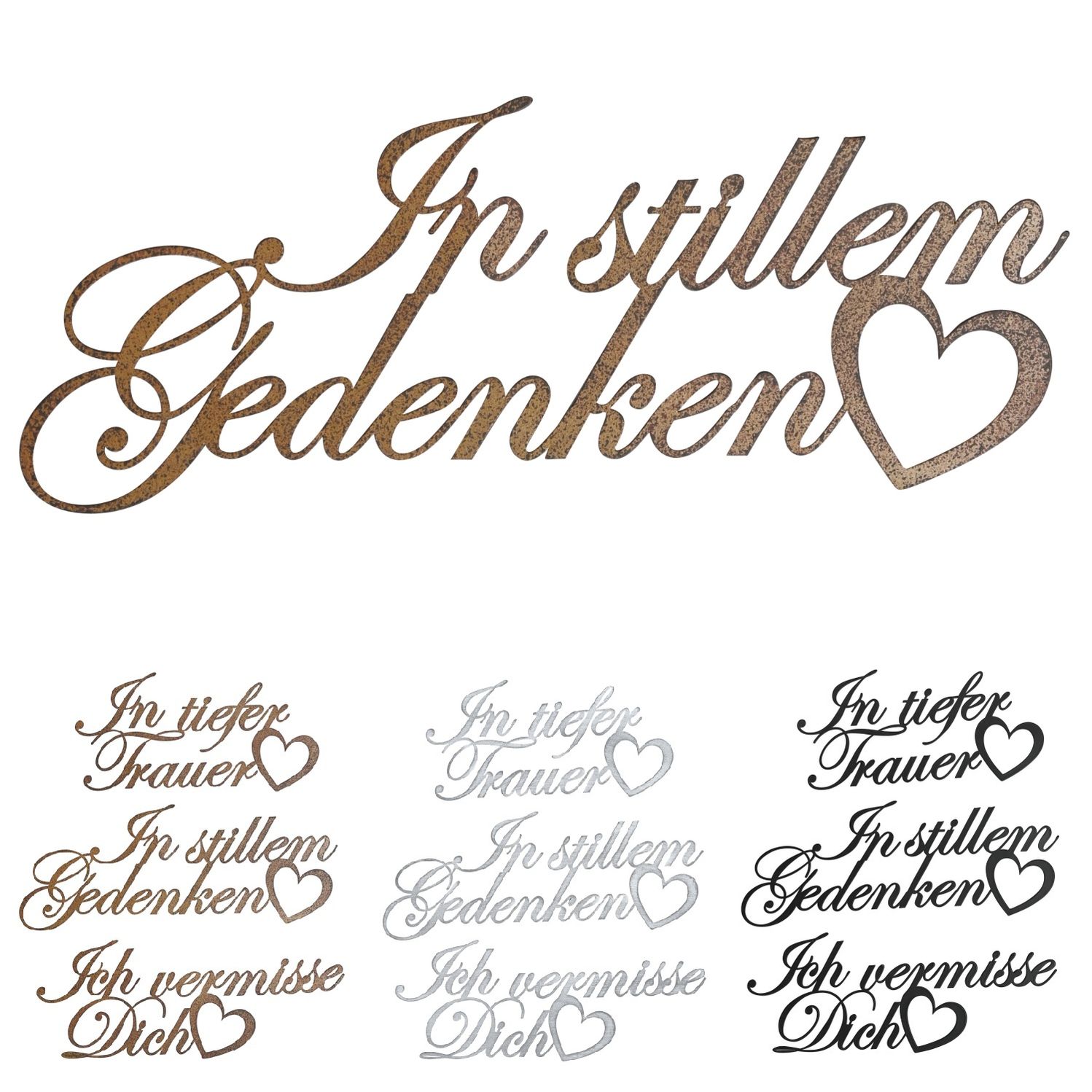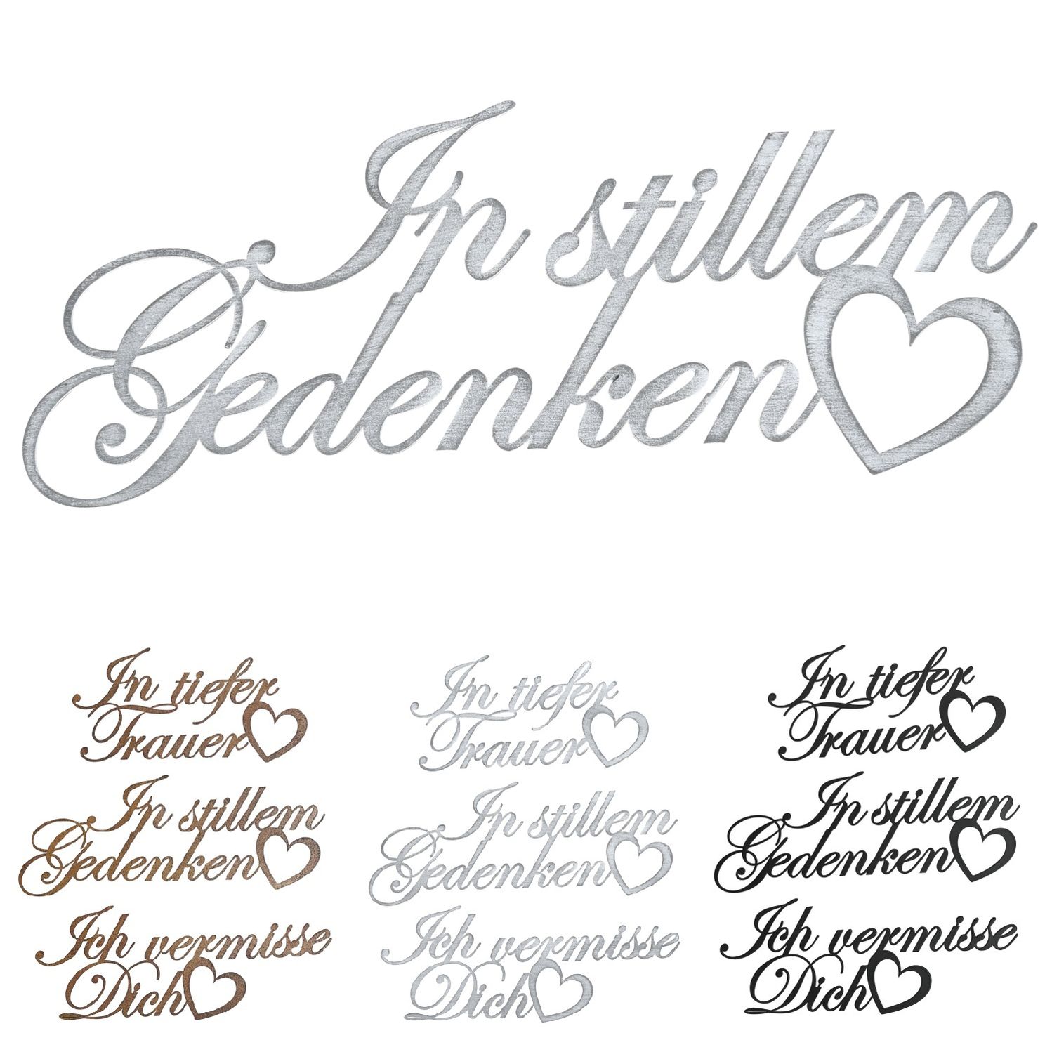 Grabschmuck Schriftzug zum Legen "In Stillem Gedenken" "In tiefer Trauer" "Ich vermisse Dich" ca. B 22-28cm x H 11cm