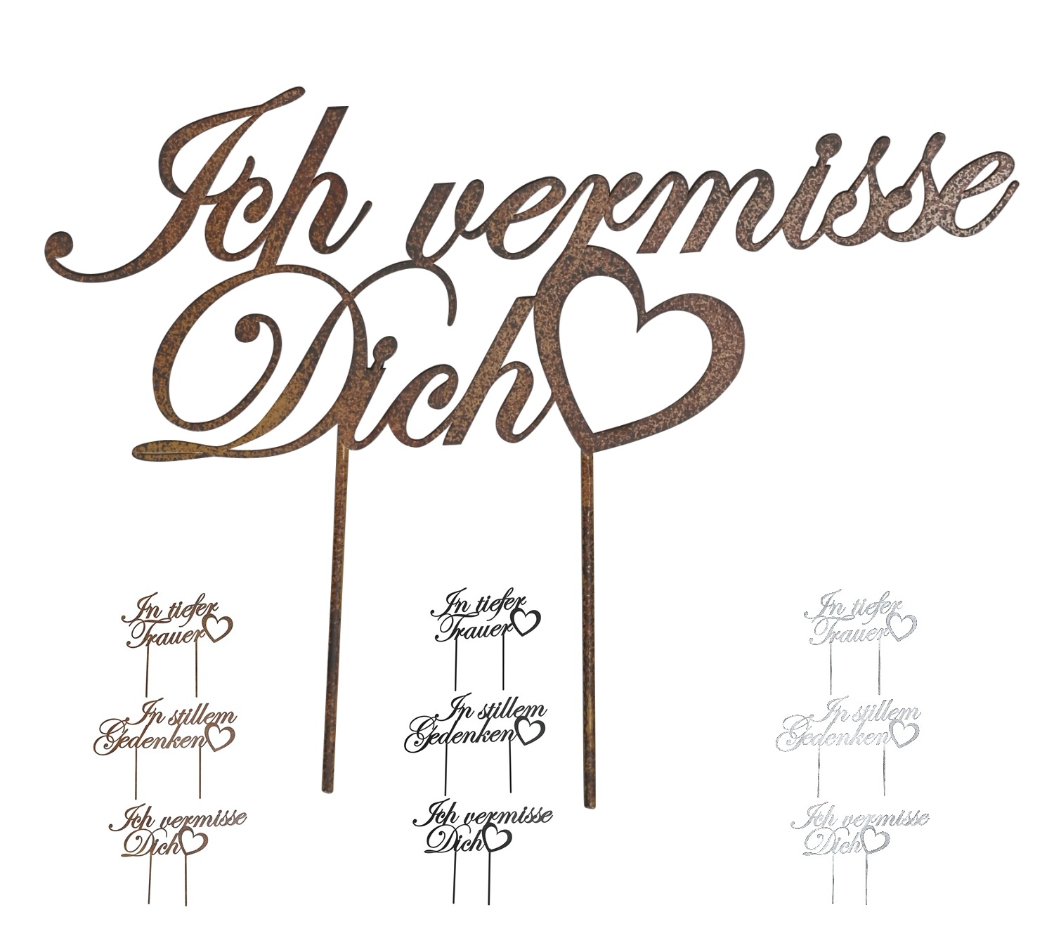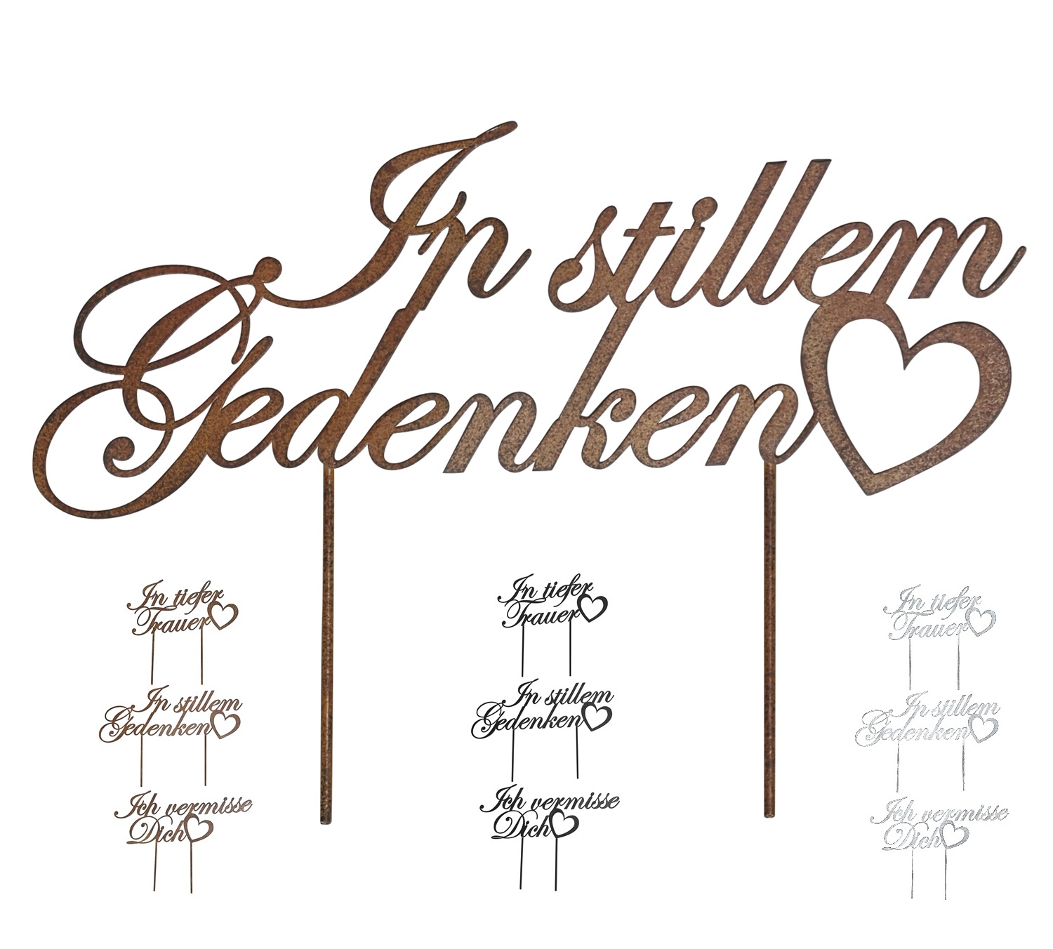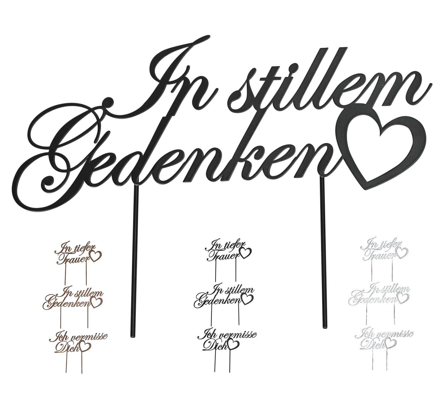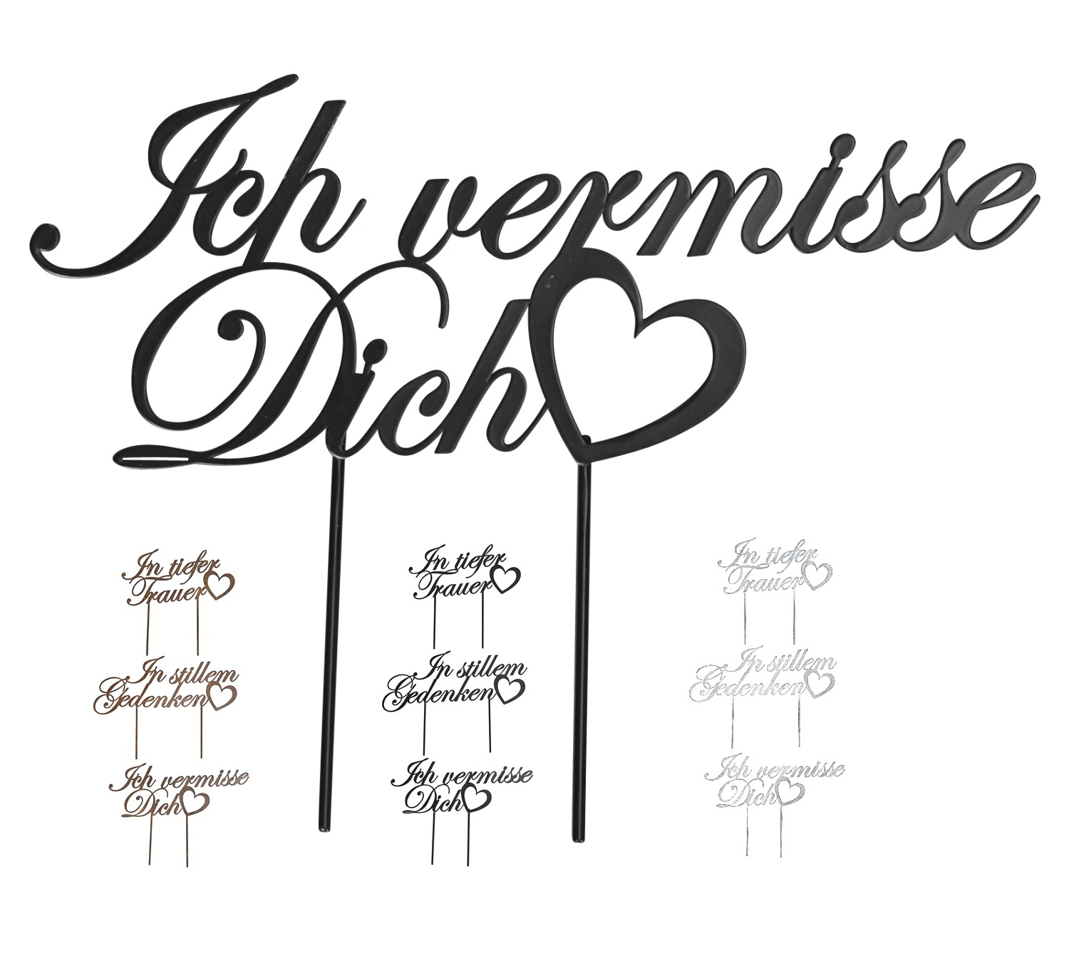Grabschmuck Schriftzug zum Stecken "In Stillem Gedenken" "In tiefer Trauer" "Ich vermisse Dich" ca. B 21-28cm x H 9-11cm