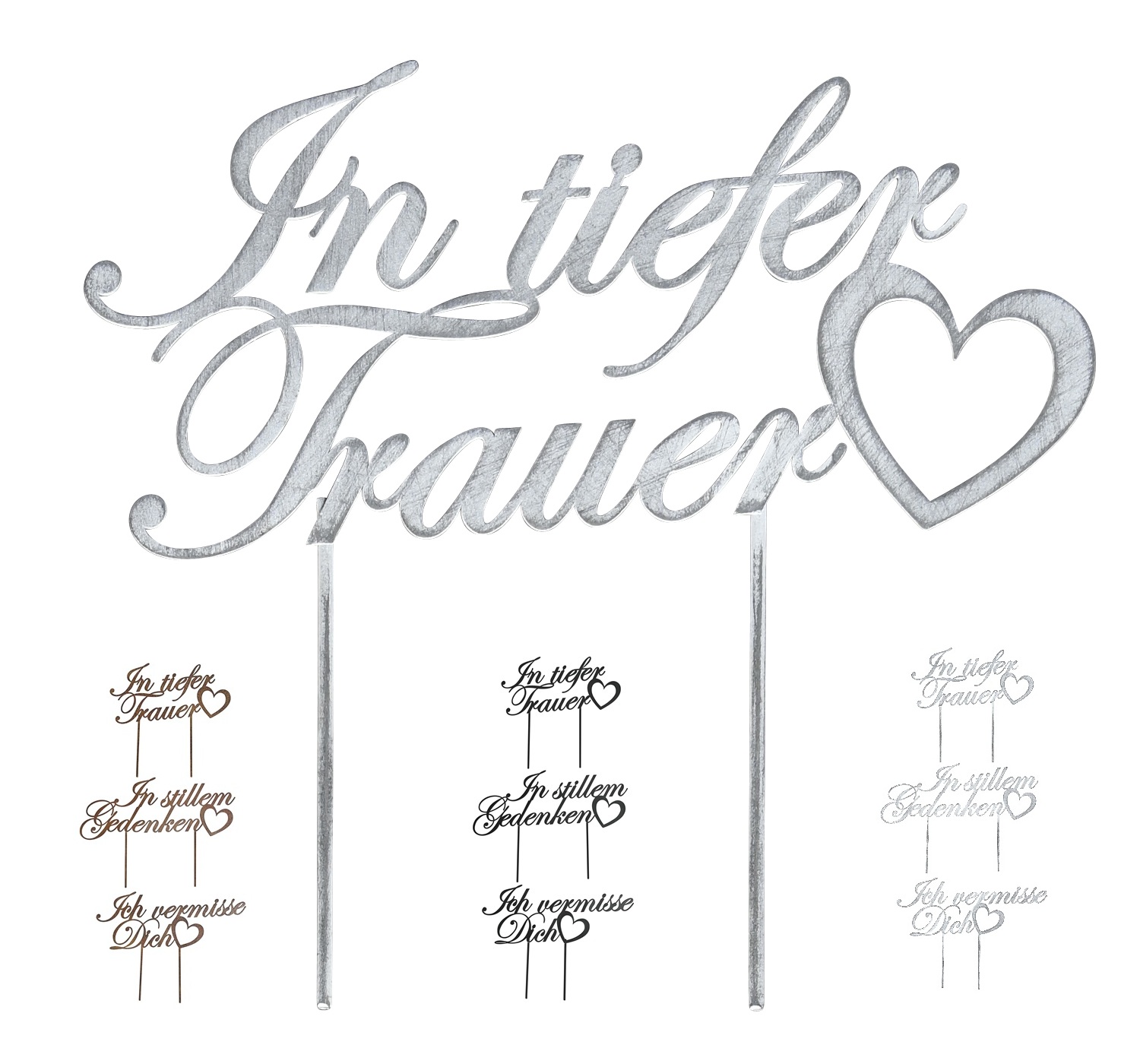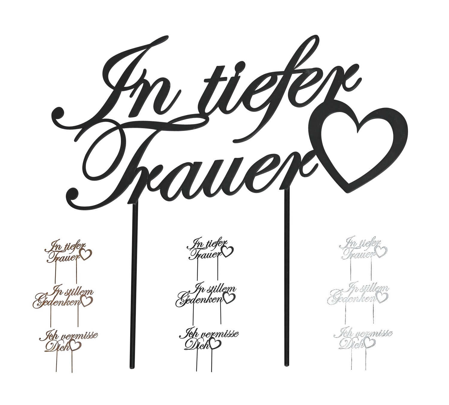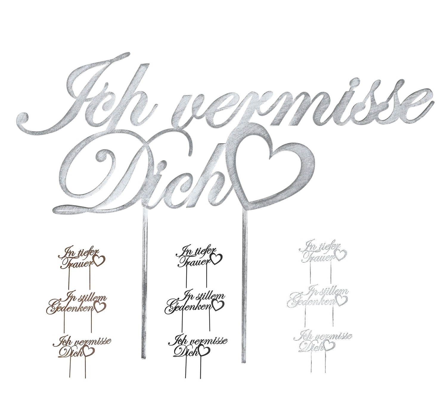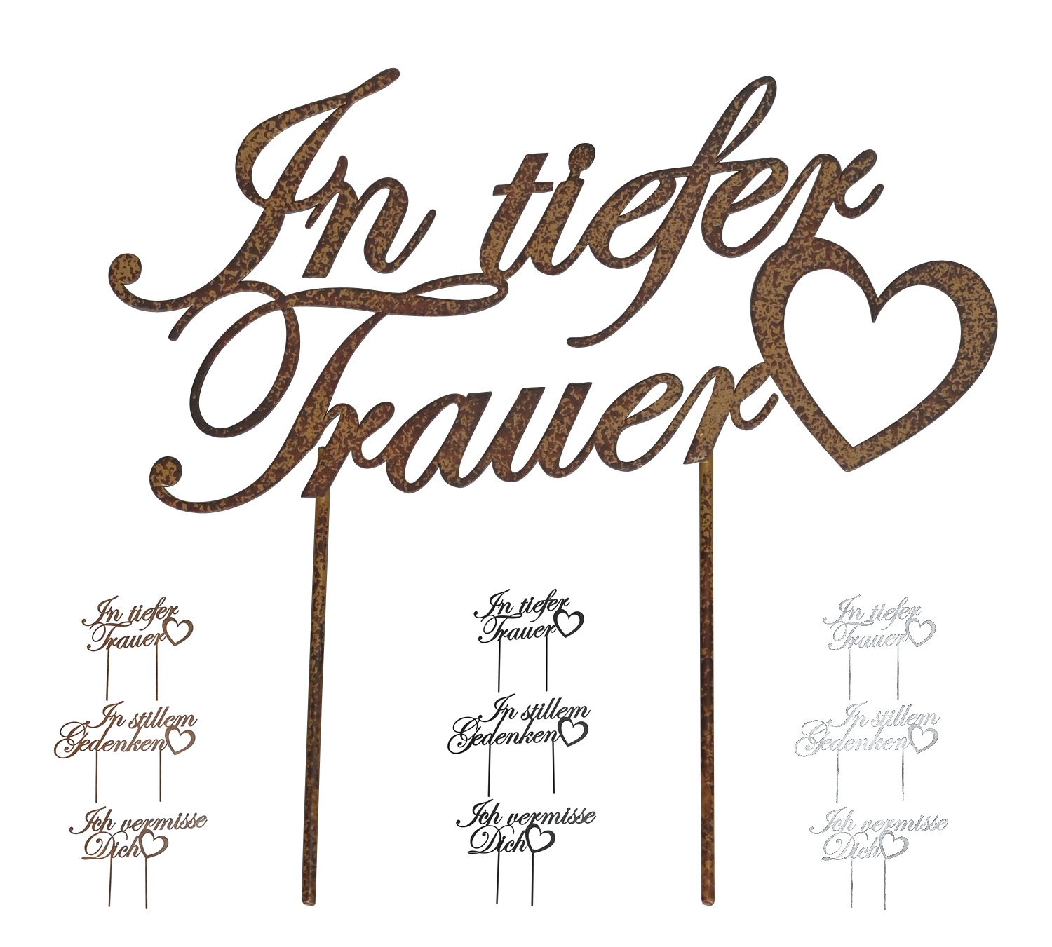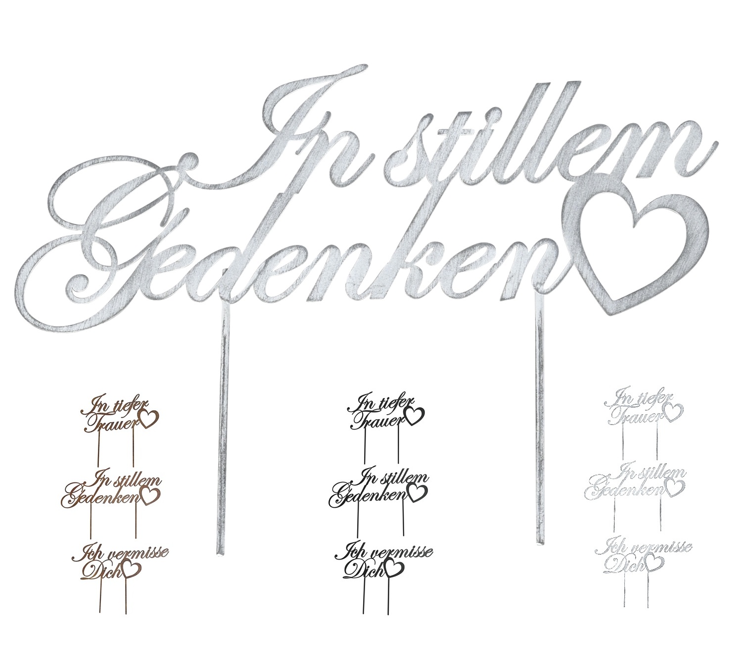 Grabschmuck Schriftzug zum Stecken "In Stillem Gedenken" "In tiefer Trauer" "Ich vermisse Dich" ca. B 21-28cm x H 9-11cm