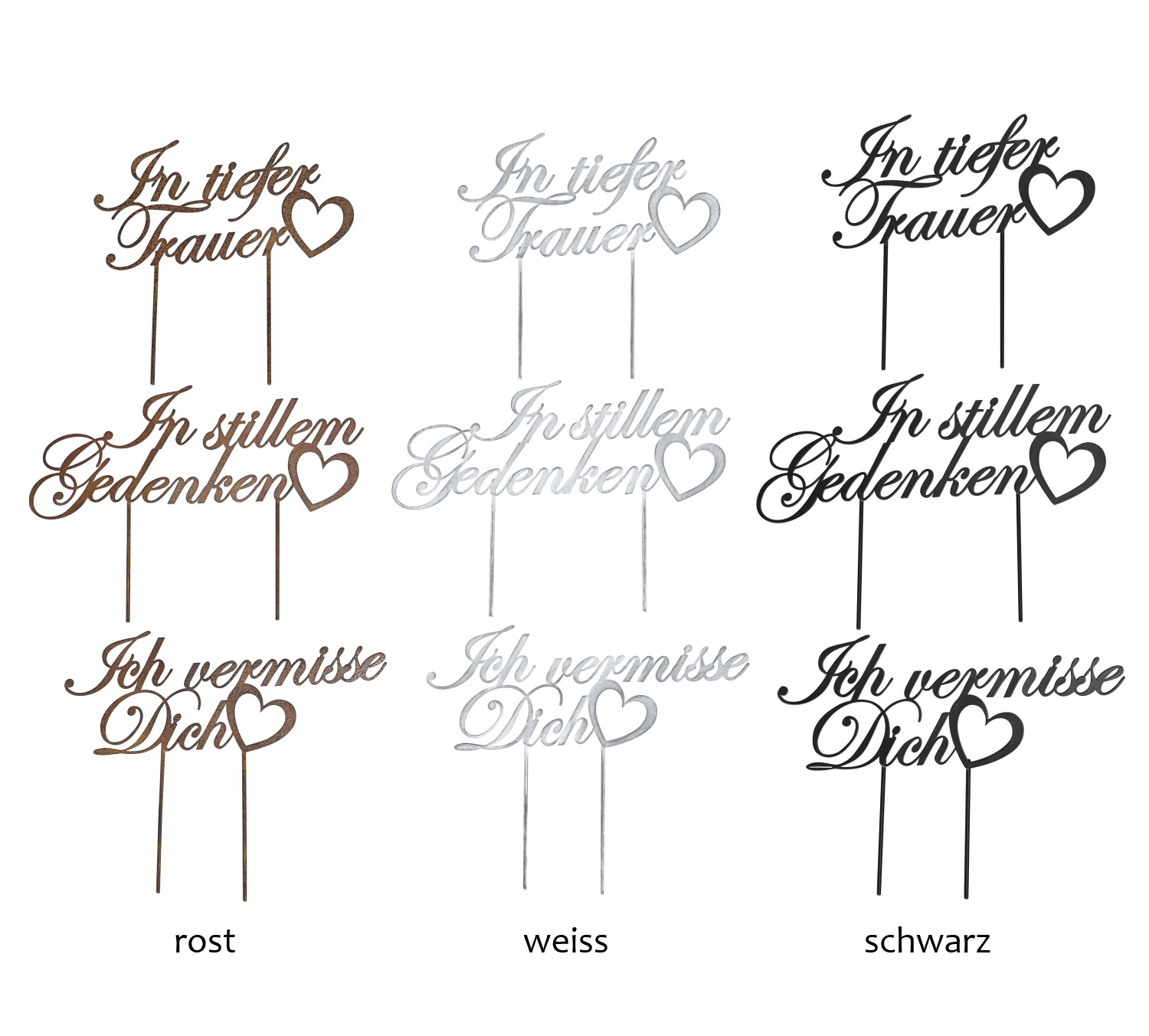 Grabschmuck Schriftzug zum Stecken "In Stillem Gedenken" "In tiefer Trauer" "Ich vermisse Dich" ca. B 21-28cm x H 9-11cm