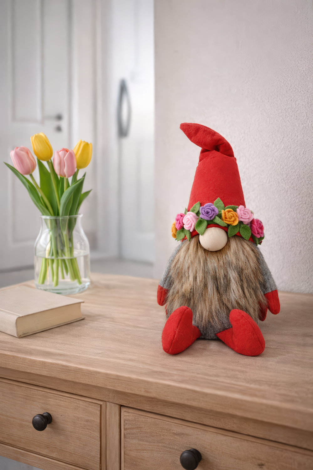 AKTION Blumenwichtel Deko Wichtel mit Blumenkranz, ca. 32 cm x 10 cm x 13 cm