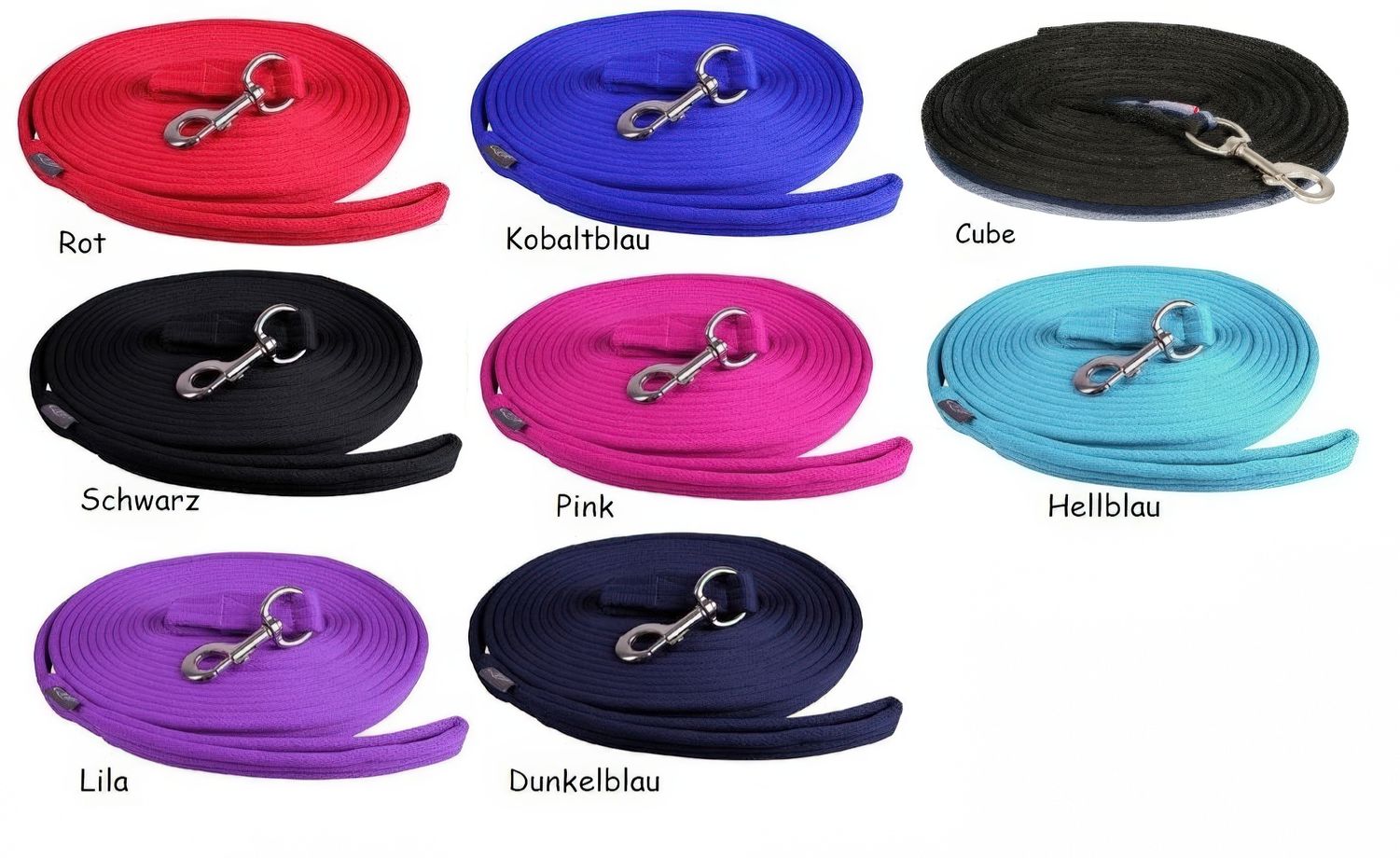 Verpackt ist die Longe in einer praktischen Tasche. WÀhlen Sie aus verschiedenen Farbkombinationen und Unifarben.