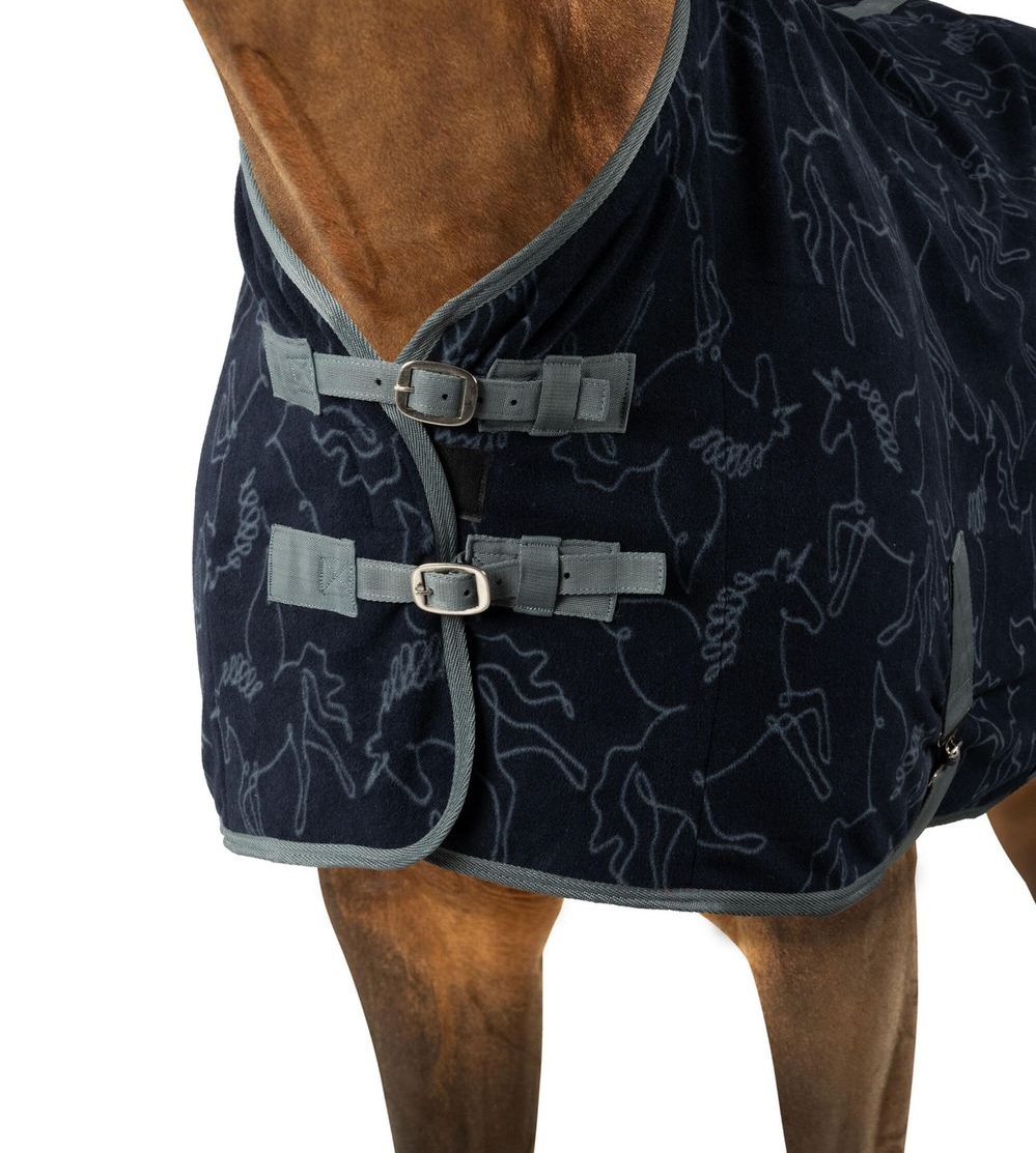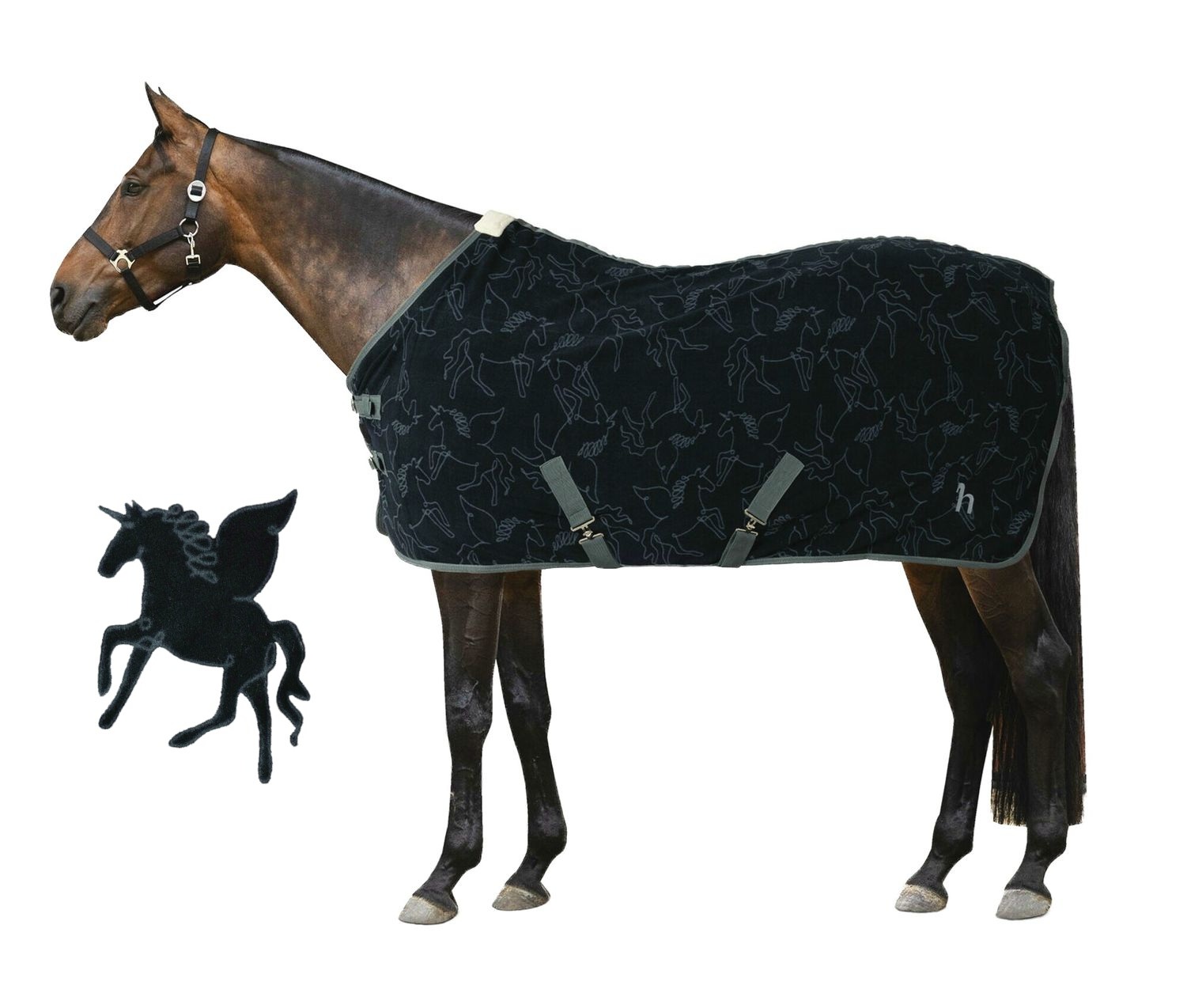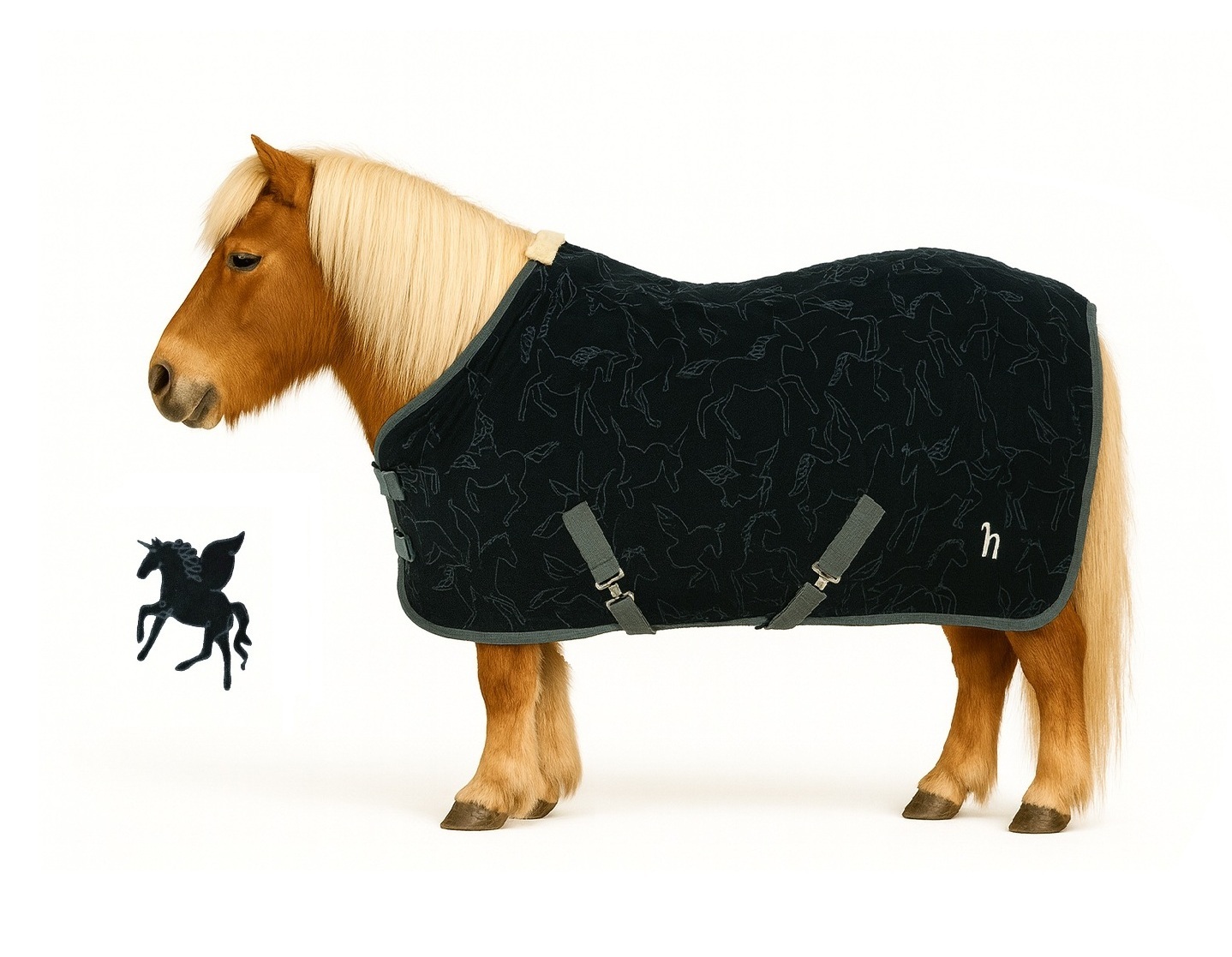 Fleece Abschwitzdecke Pony Shetty Pegasus Print Anti-Pilling Atmungsaktiv Schweifriemen Doppelschnallen Gr.75-135