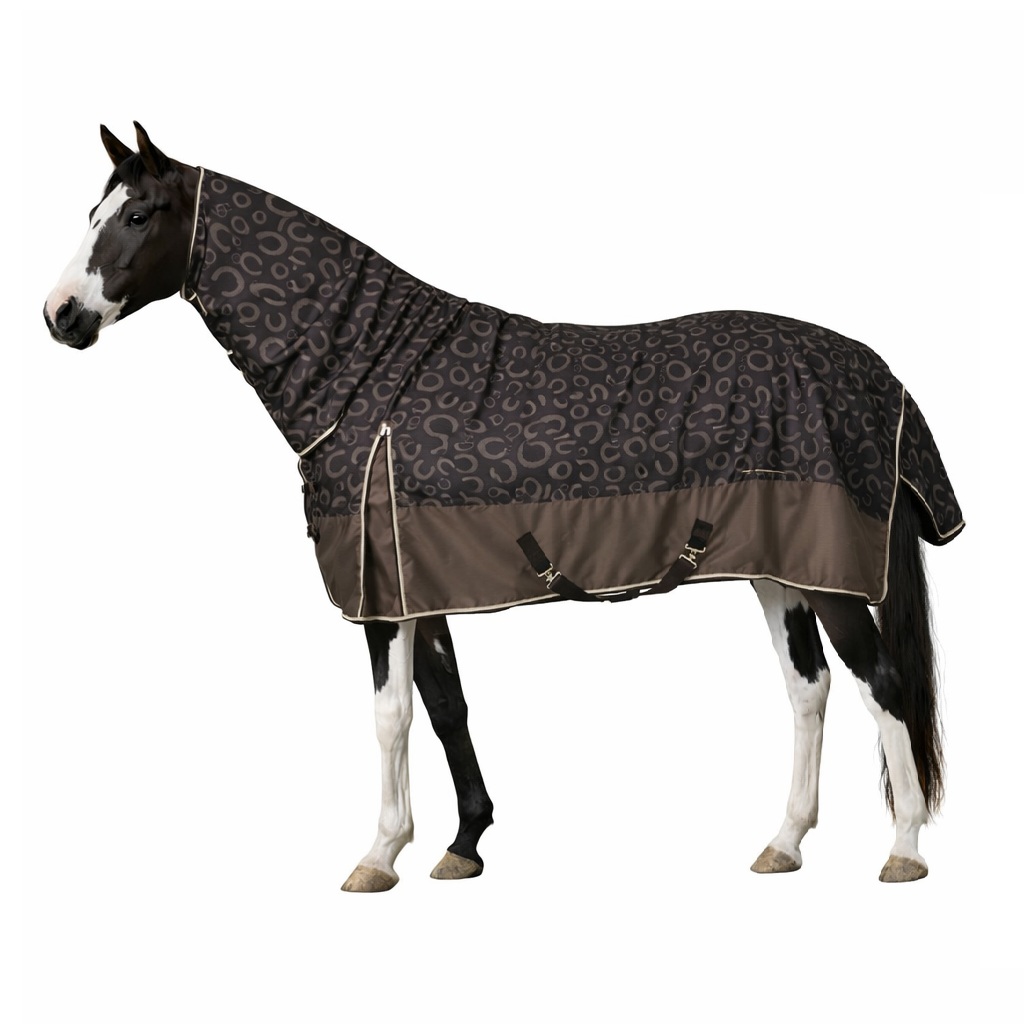 Leichte wasserdichte Regendecke mit Halsteil 0g atmungsaktiv mit Hufeisen-Print GrĂ¶ĂŸe 125-165 cm