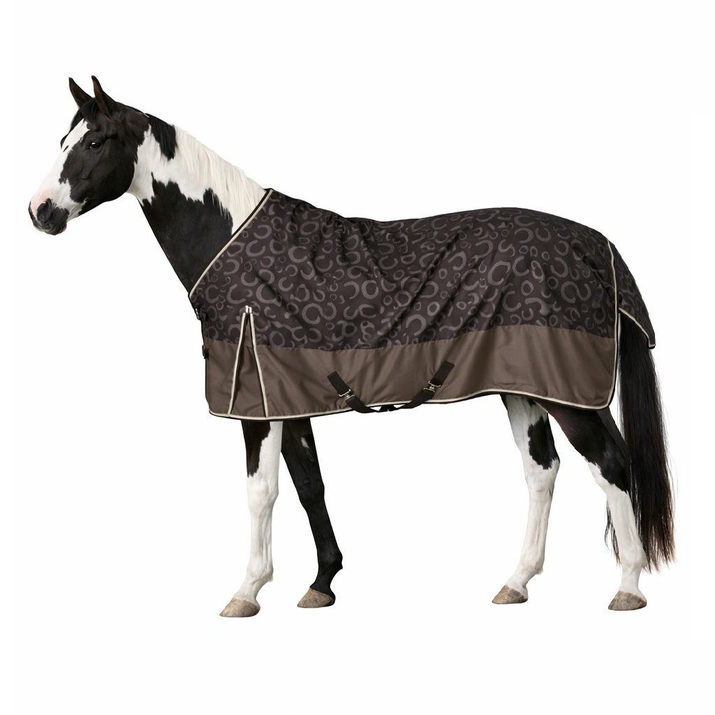 Leichte wasserdichte Regendecke ohne Halsteil 0g atmungsaktiv mit Hufeisen-Print GrĂ¶ĂŸen 125 - 165 cm