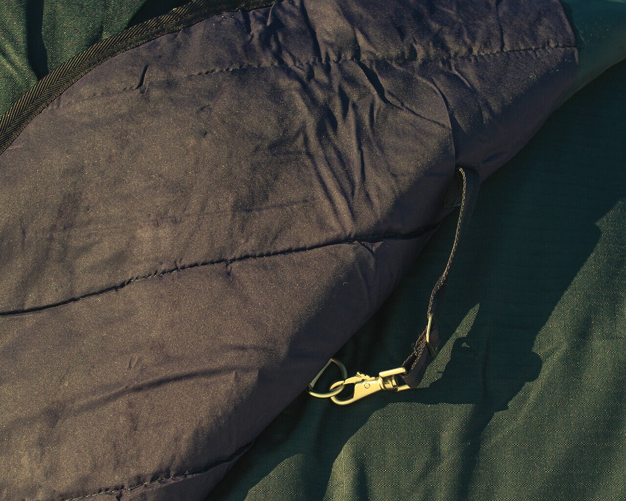 Atmungsaktiv - Wasserdicht 3000 mm/mÂČ - Einfach zu befestigen mit 3 Clips - 3 KlettverschlĂŒsse an der Unterseite - 200gr FĂŒllung