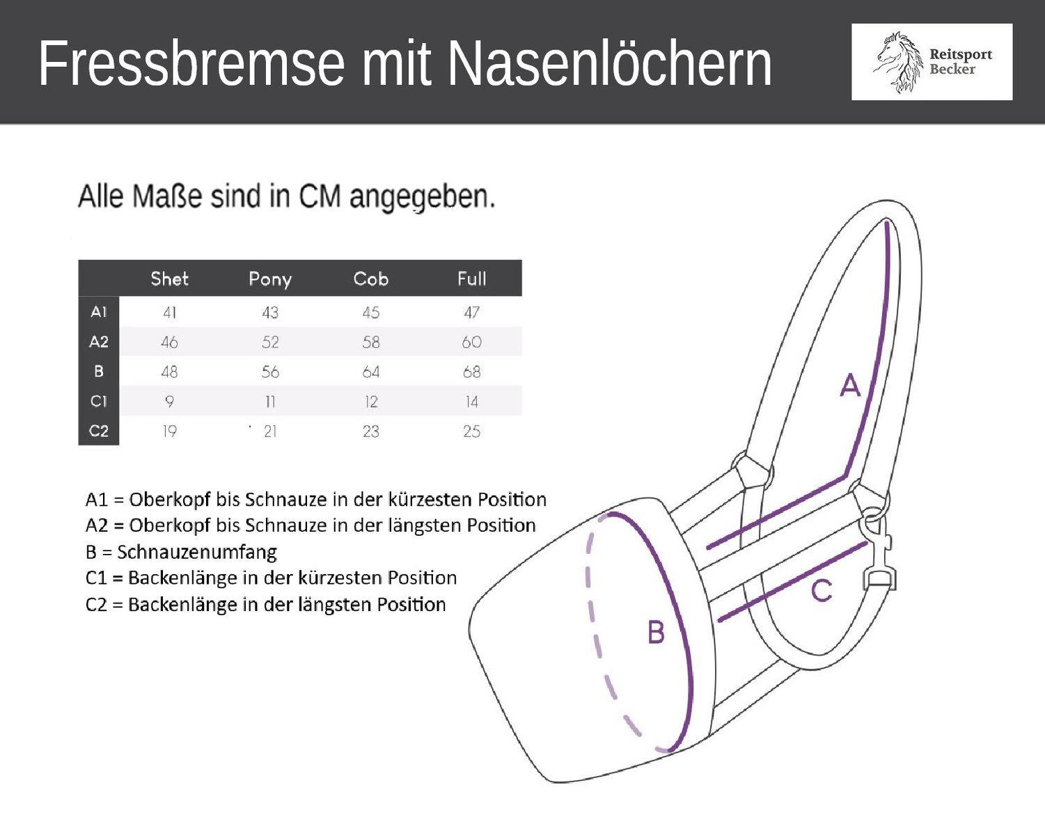 âąÂ Der Klettverschluss am GenickstĂŒck öffnet sich bei groĂem Druck, wodurch das Pferd nirgendwo hĂ€ngenbleiben kann.
