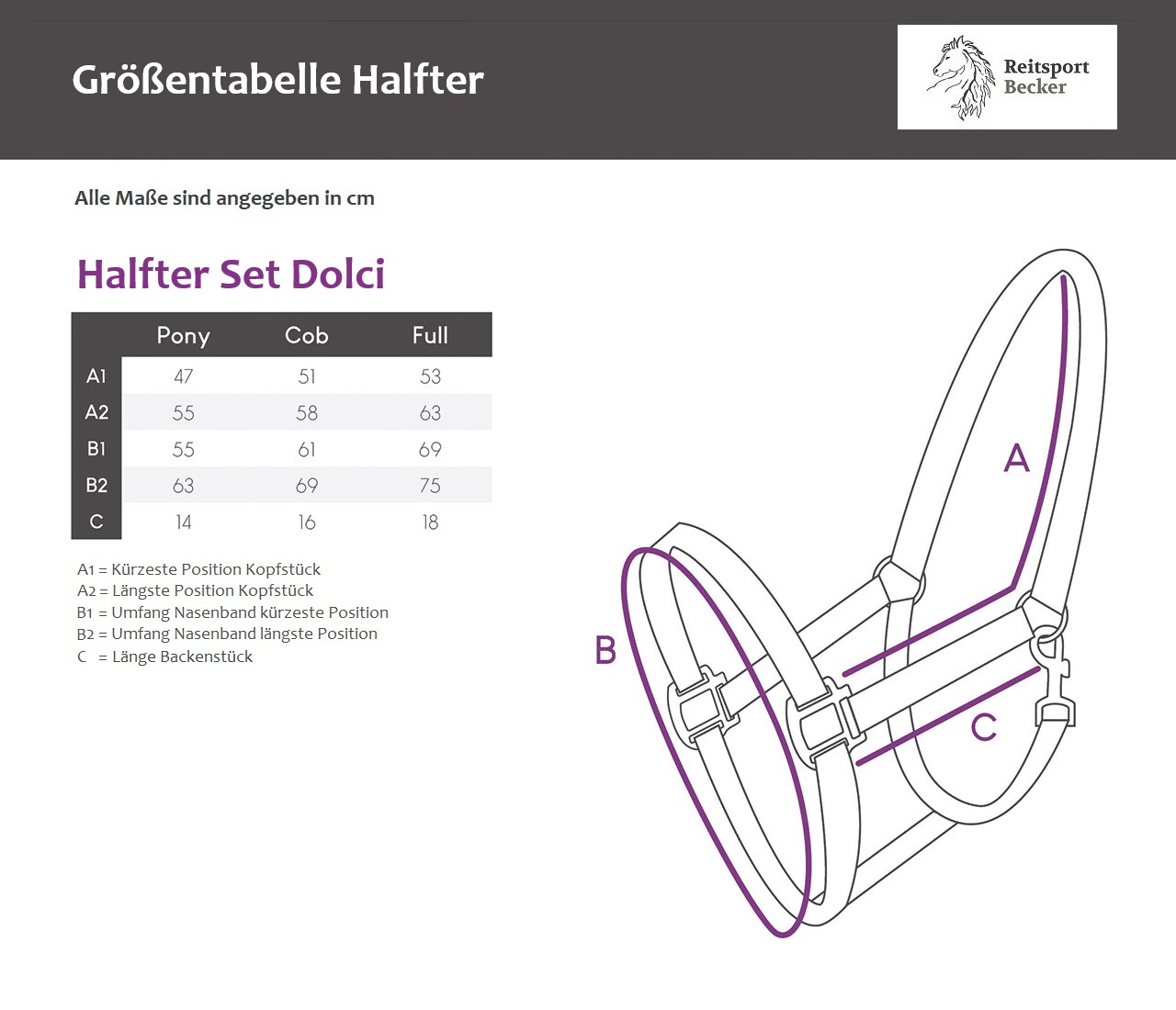 Das Halfter-Set Dolci ist mit weichem Kunstfell unterlegt und mit einer Silberkordel am Nasenriemen, den BackenstĂŒcken und am GenickstĂŒck versehen. Das Halfter mit Karabiner-Verschluss hat silberne Akzente und ist doppelt verstellbar.