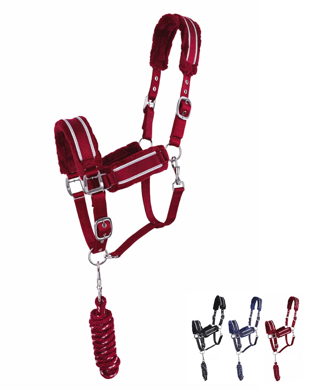 Deluxe Halfter-Set Dolci weich mit Kunstfell unterlegt Halfter 2-fach verstellbar + Strick 2m Pony Cob Full