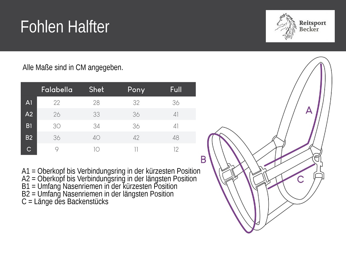 Fohlenhalfter 3-fach verstellbar fĂŒr Shetty, Falabella, Pony oder Full
