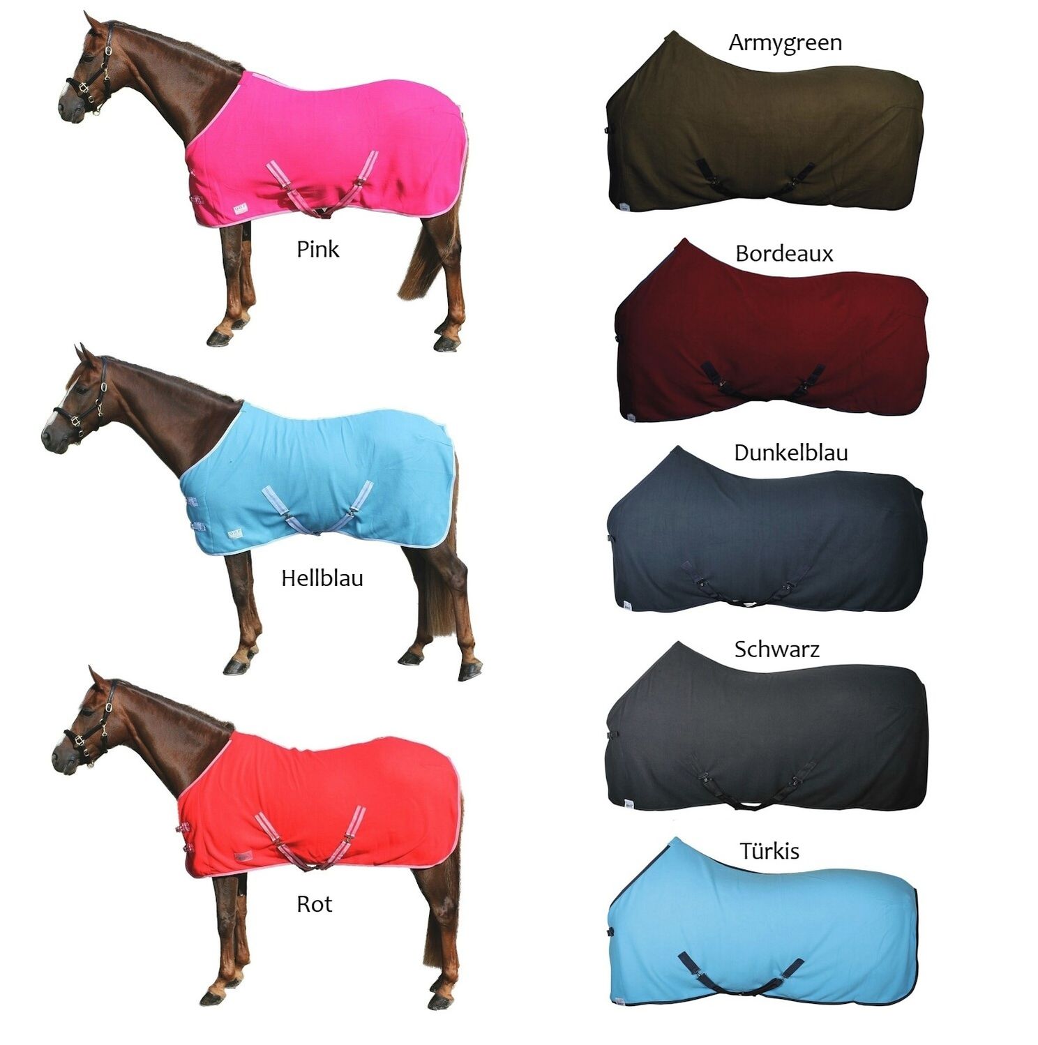 Farblich passende Accessoires zu unseren Decken, wie z. B. Halfter, FĂŒhrstricke, Hair Extensions etc. finden Sie in unserem Shop.