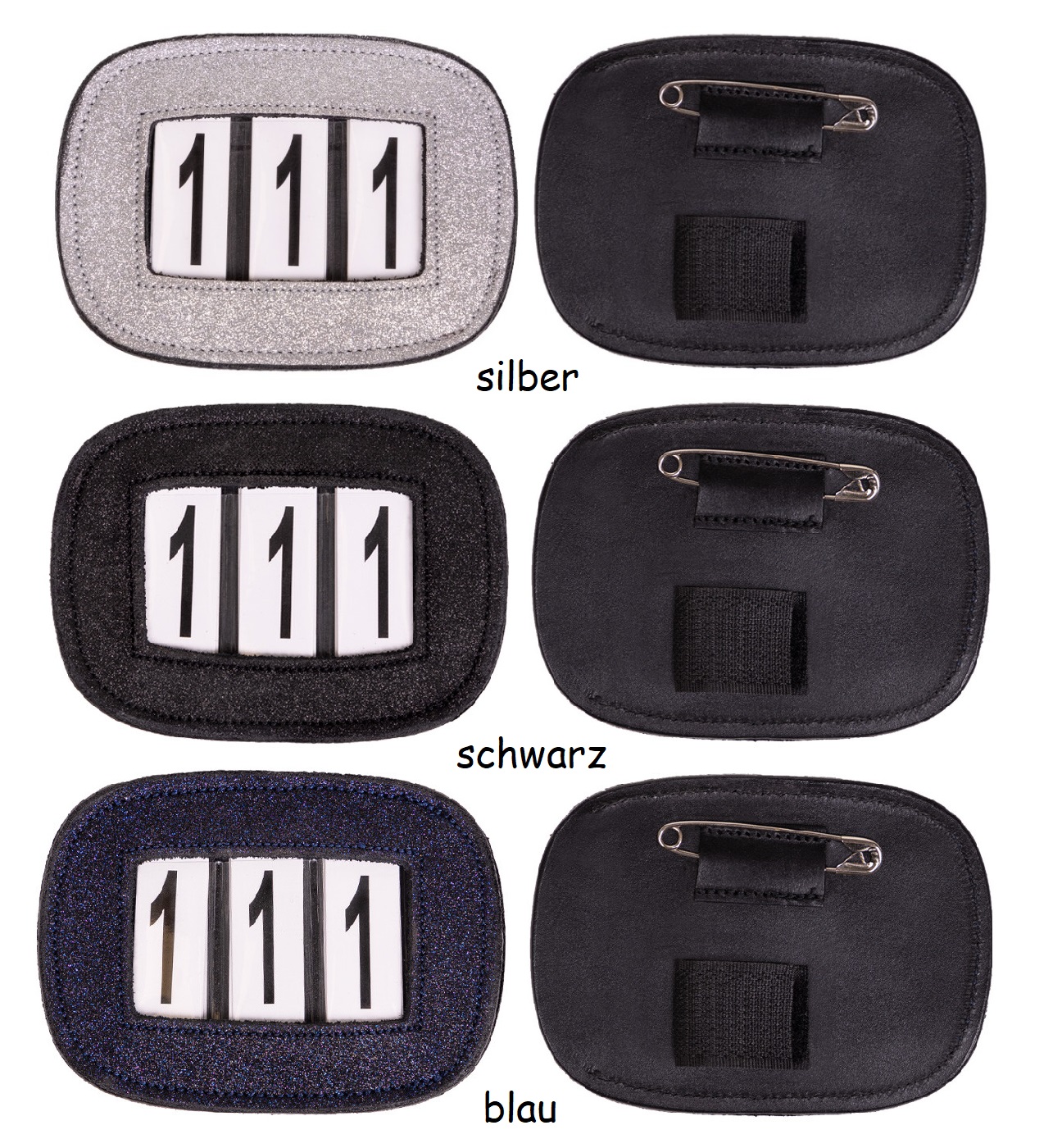 1 StĂŒck Startnummer Shine viereckig mit dezentem Glitzer 1 Halter+Tauschnummern