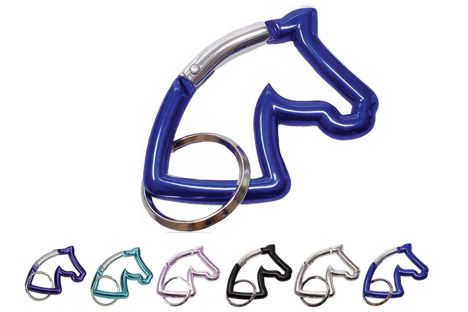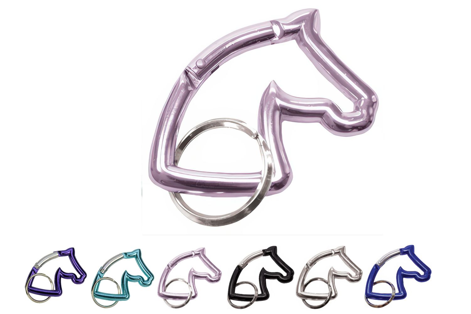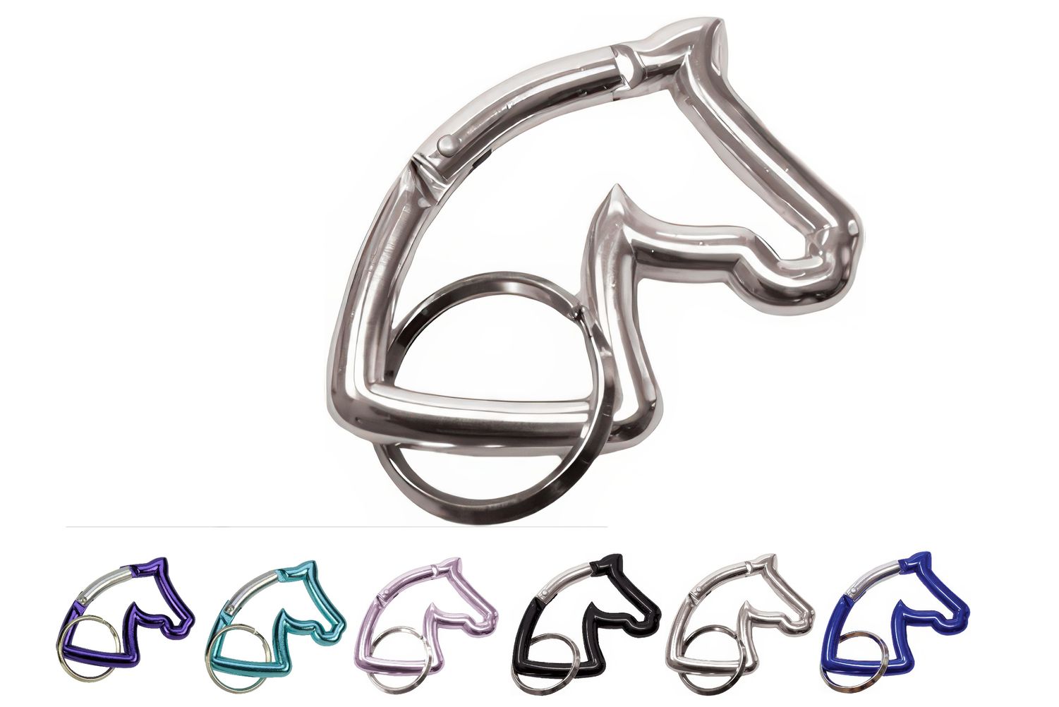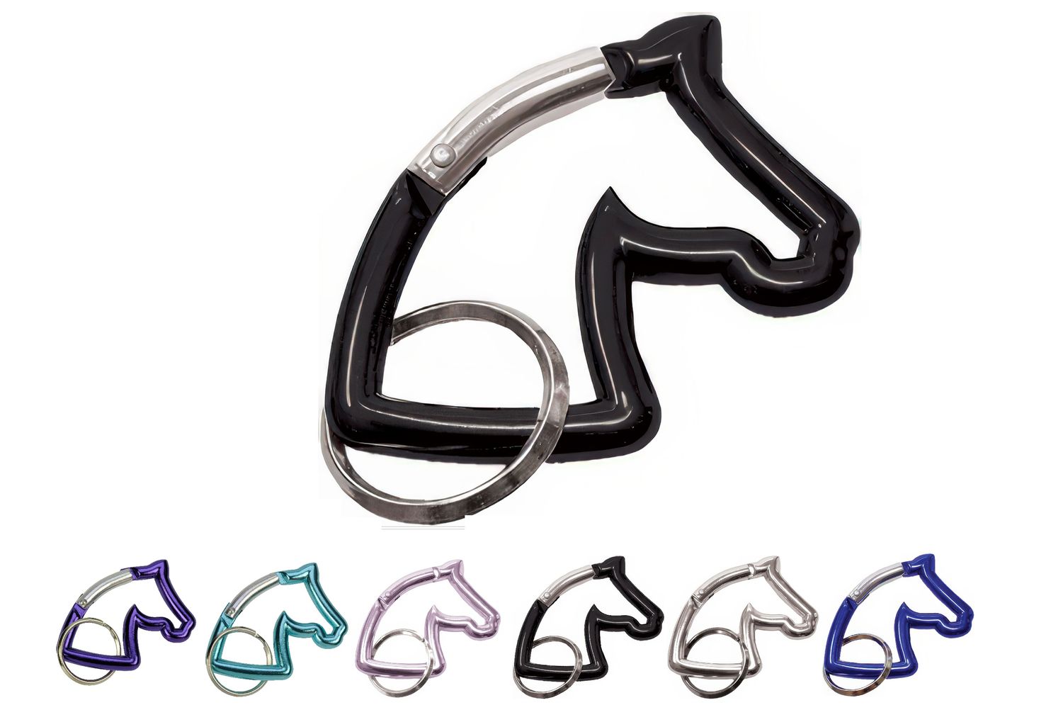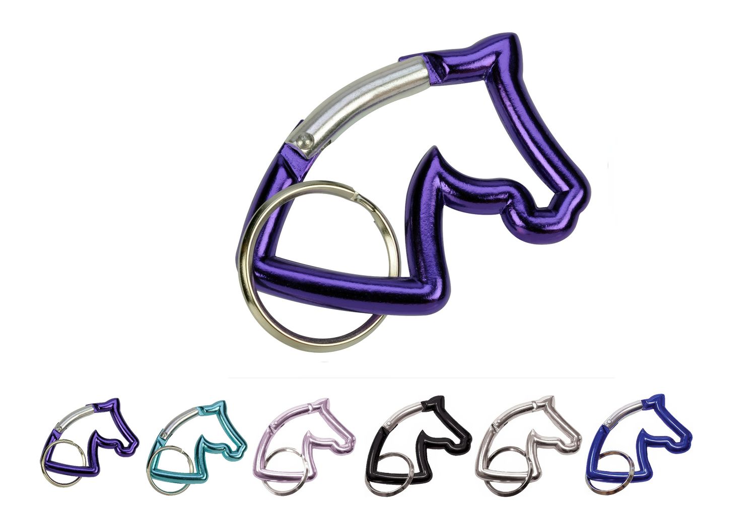 Vielseitiger leichtgewichtiger SchlĂŒsselanhĂ€nger Pferdekopf in Karabinerform, mit SchlĂŒsselring.