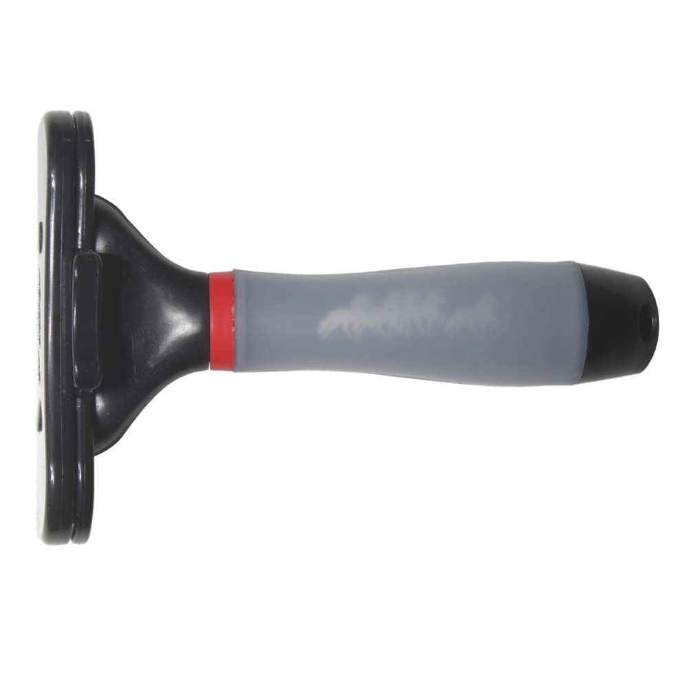 Damit der Striegel besser in der Hand liegt, hat er einen weichen geschmeidigen mit Gel gefĂŒllten Griff.