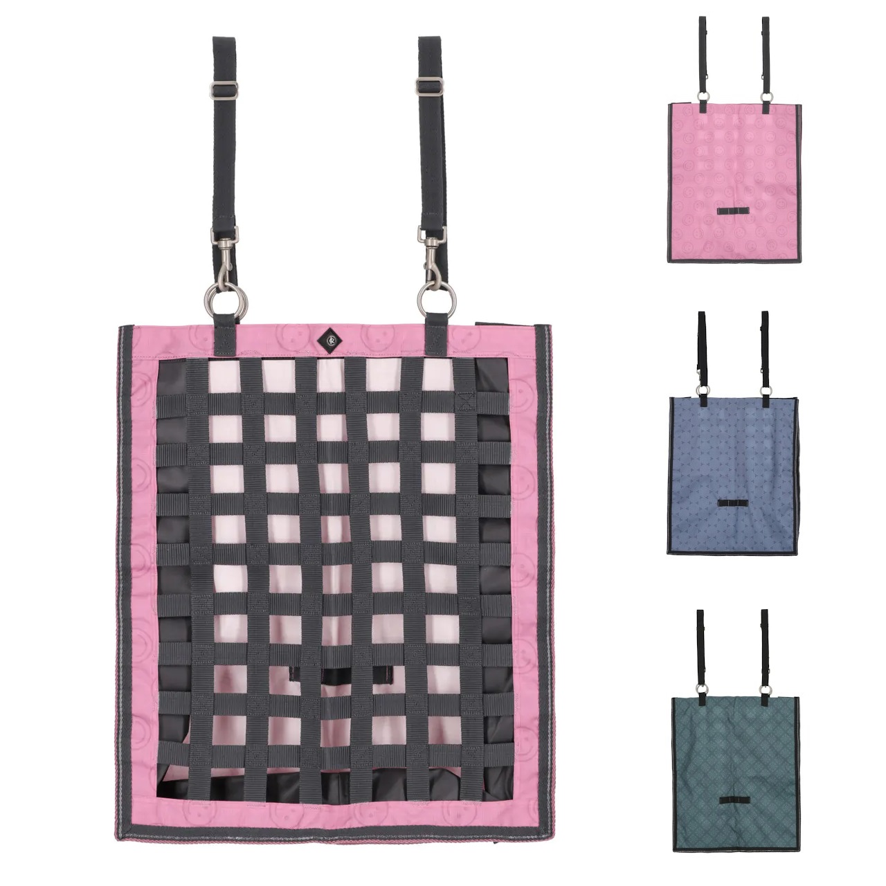 Slowfeeder-Heusack aus starkem 600D-Turnoutstoff - Mit vier Ringen und zwei verstellbaren Schlaufen mit Clips an der Oberseite