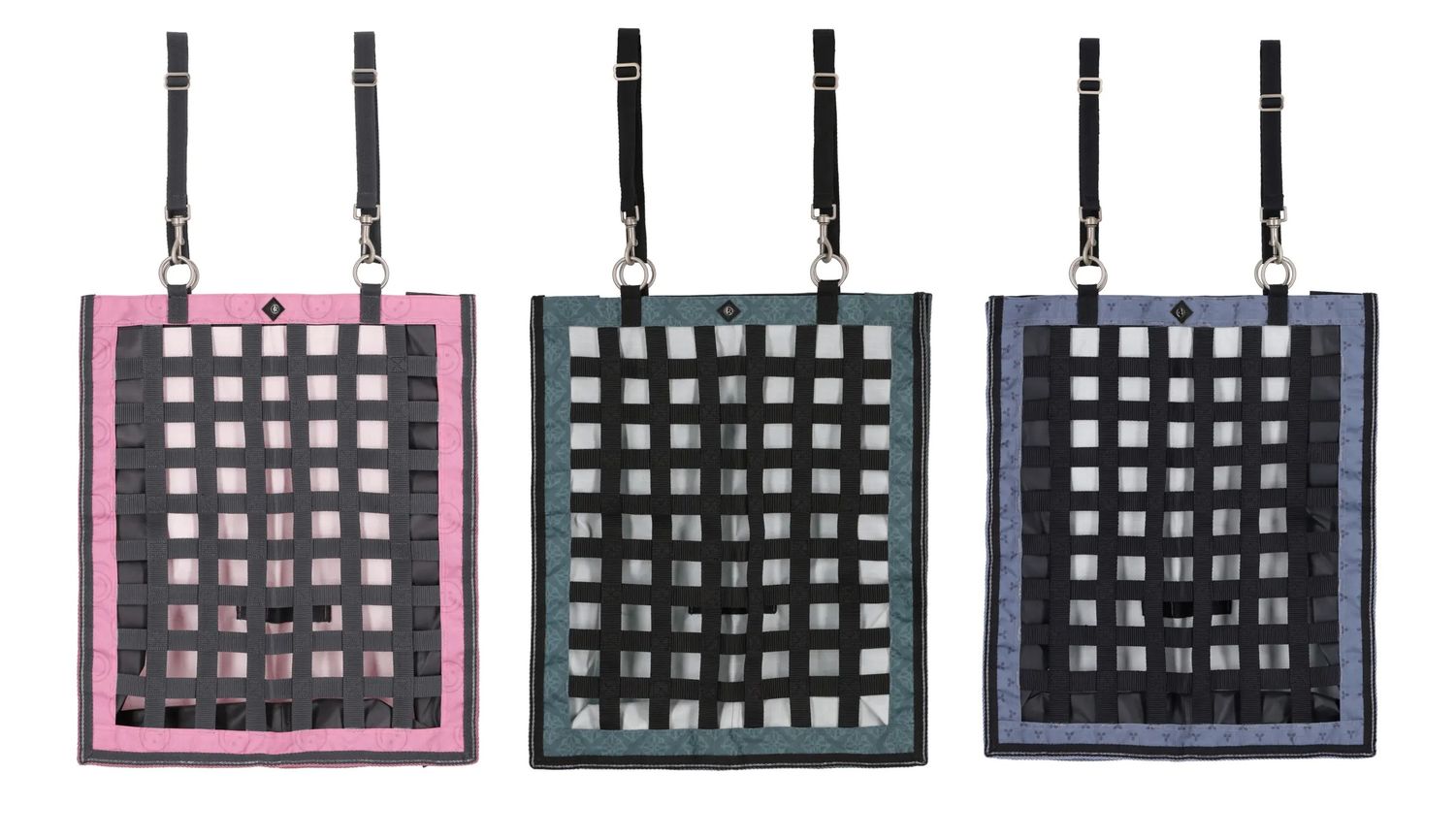 Slowfeeder-Heusack aus starkem 600D-Turnoutstoff - Mit vier Ringen und zwei verstellbaren Schlaufen mit Clips an der Oberseite