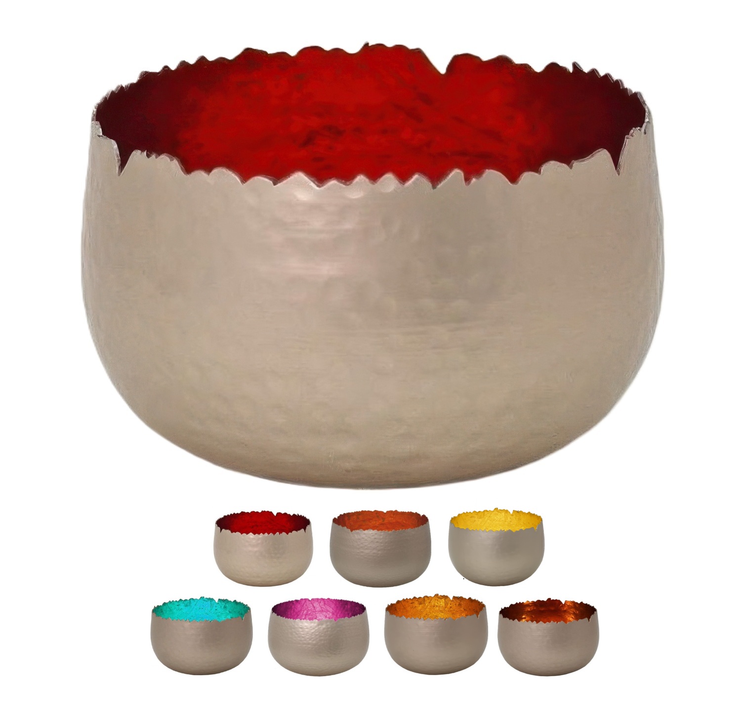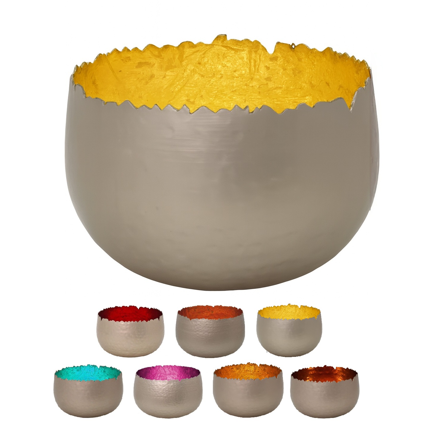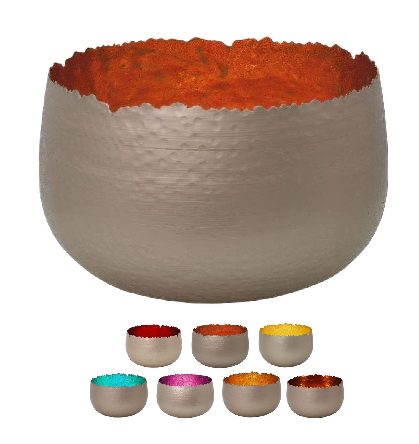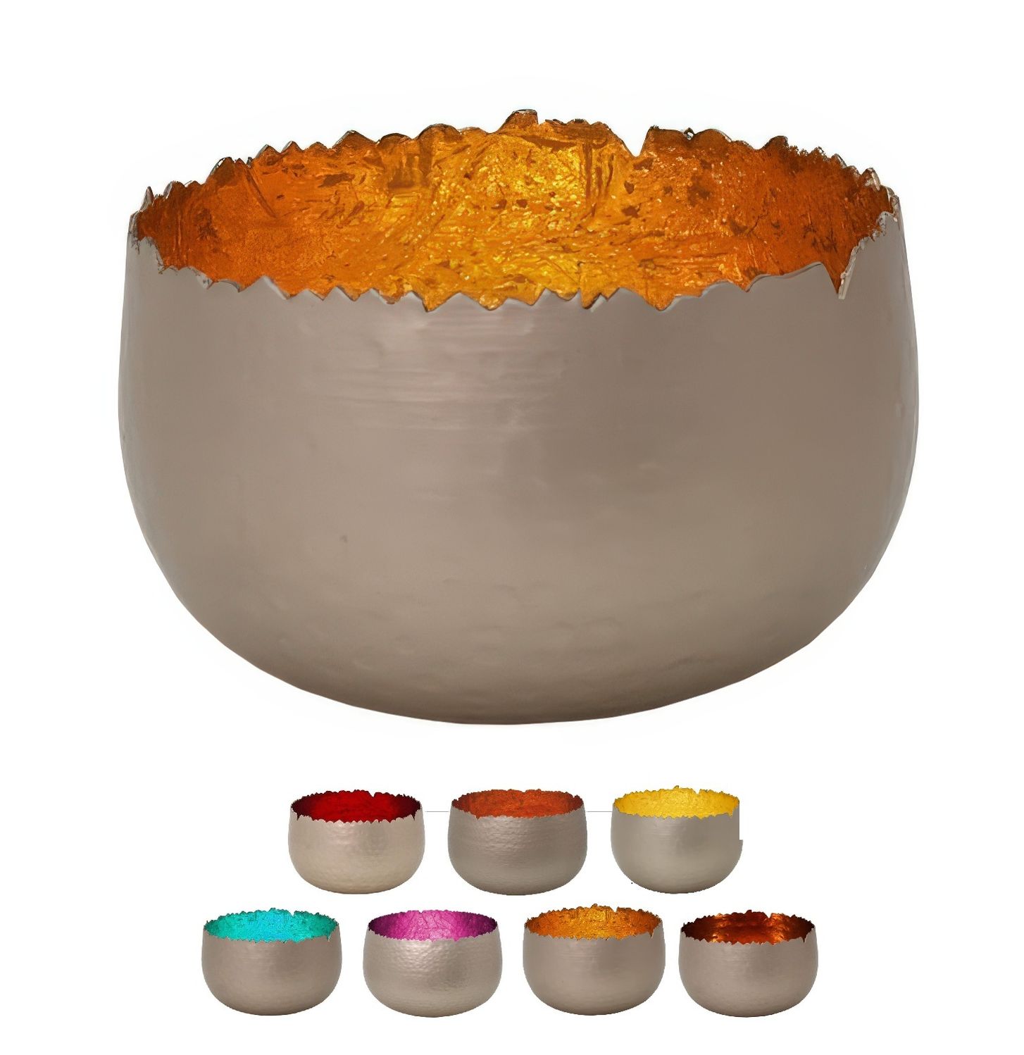 Durch die besondere Beschichtung im Inneren der Schalen erscheint es als ob die Schale leuchtet. Dieser Effekt wird noch verstÀrkt, wenn ein Teelicht oder eine Lichterkette in die Schale gelegt wird.