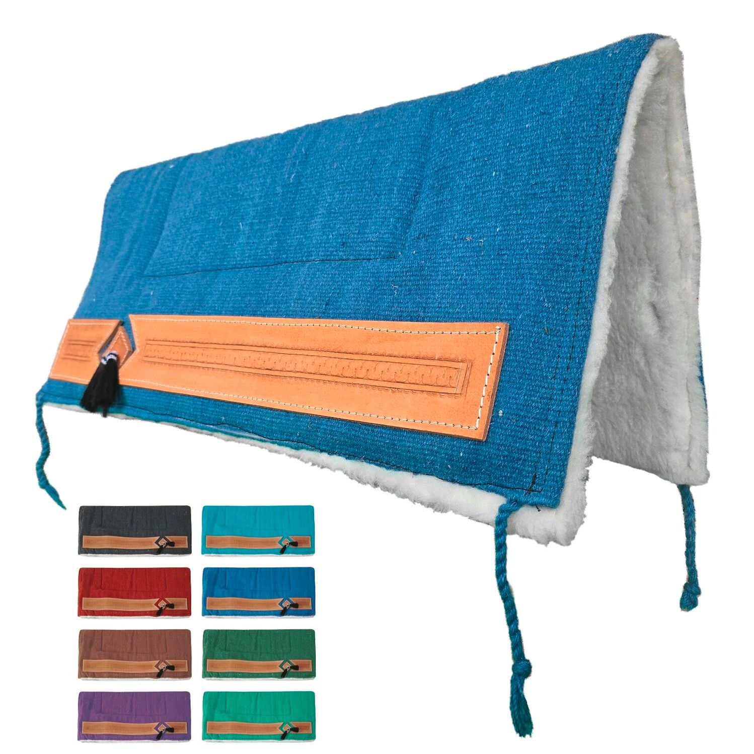 Tolles Westernpad mit super weichem Webfell. Am Rand auf jeder Seite mit edler Lederverzierung (punziert) und zwei Tasseln.
